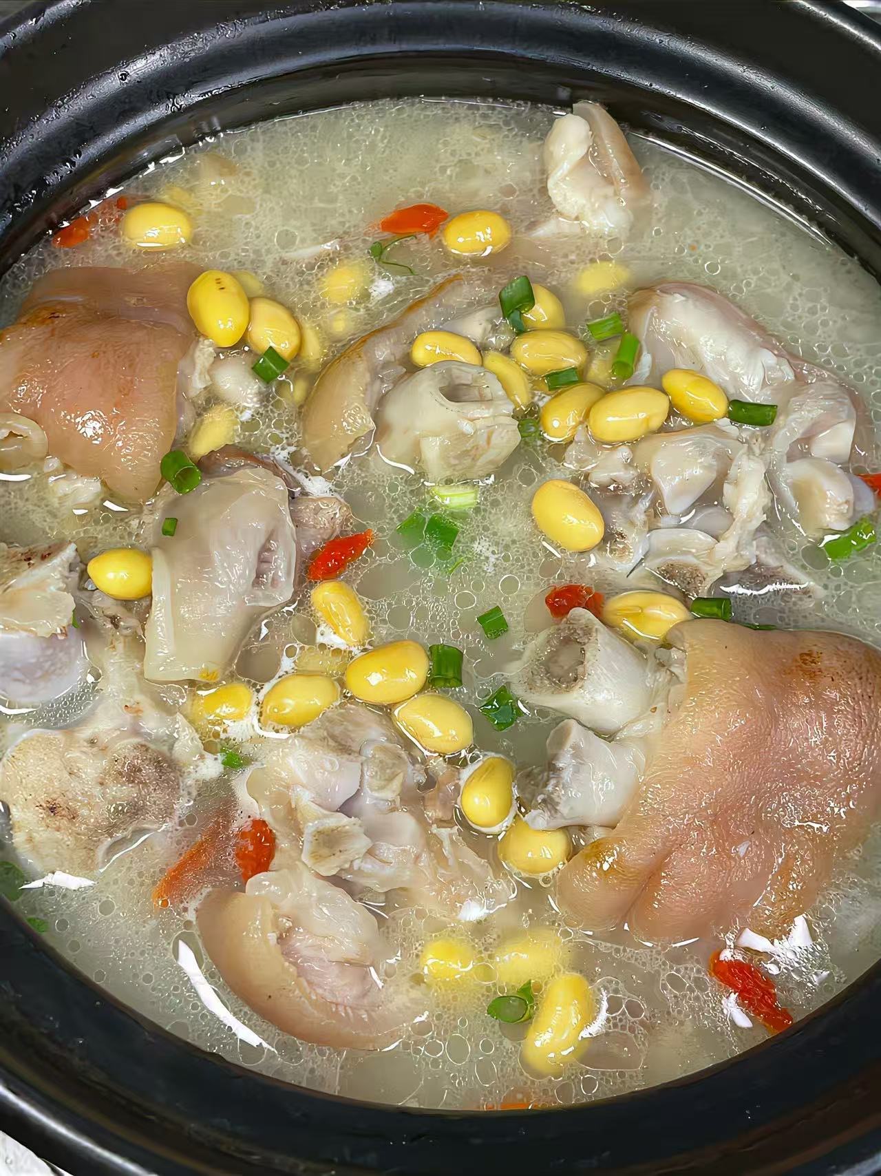 Pork and Bean Stew | ["pork","soybeans","broth","green onions","red peppers"] | ["pork:300g","beans:100g","broth:200g"] | |