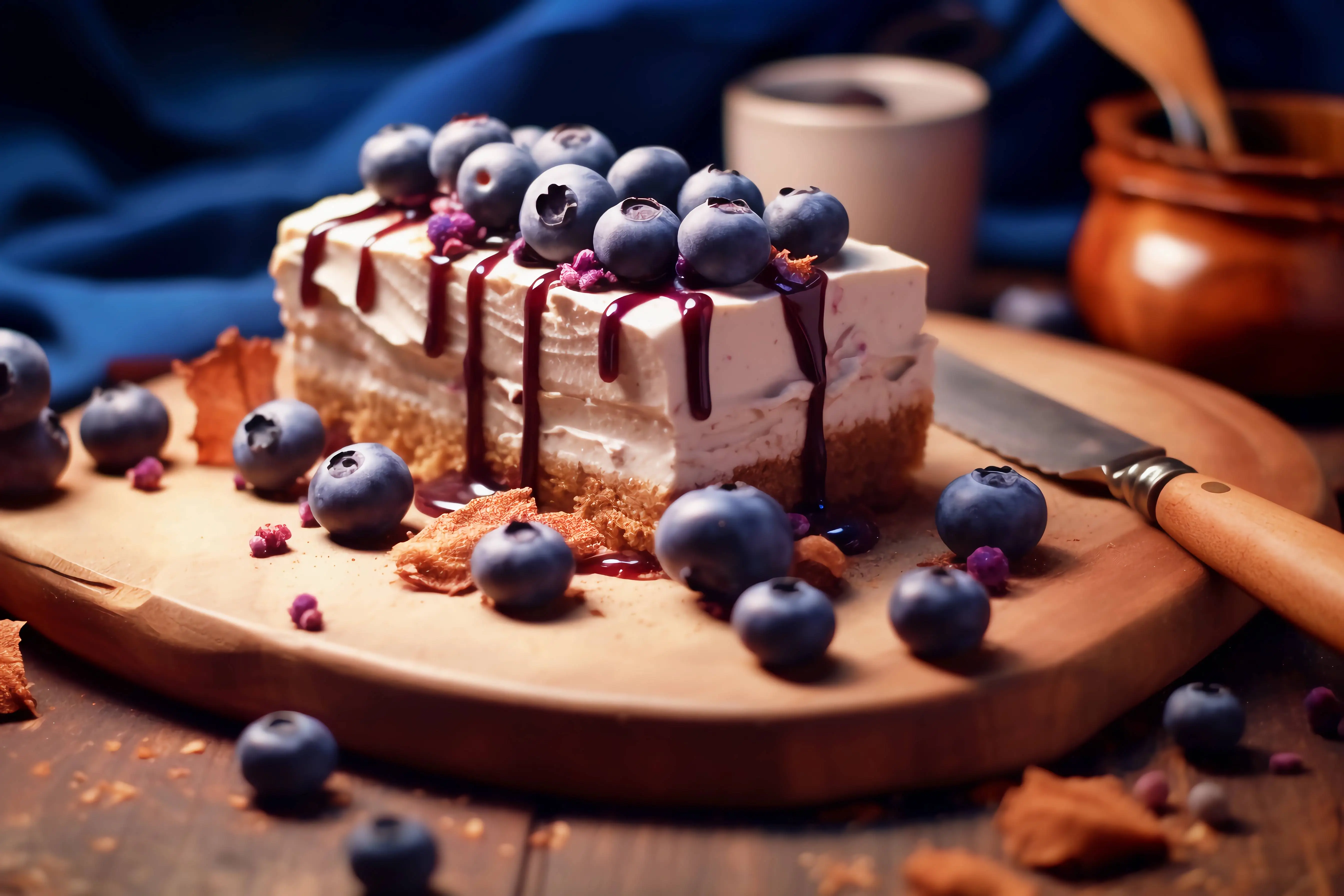 Blueberry Cheesecake | ["cream cheese","sugar","blueberries","graham crackers","butter"] | ["cake:150g","blueberries:50g"] | |