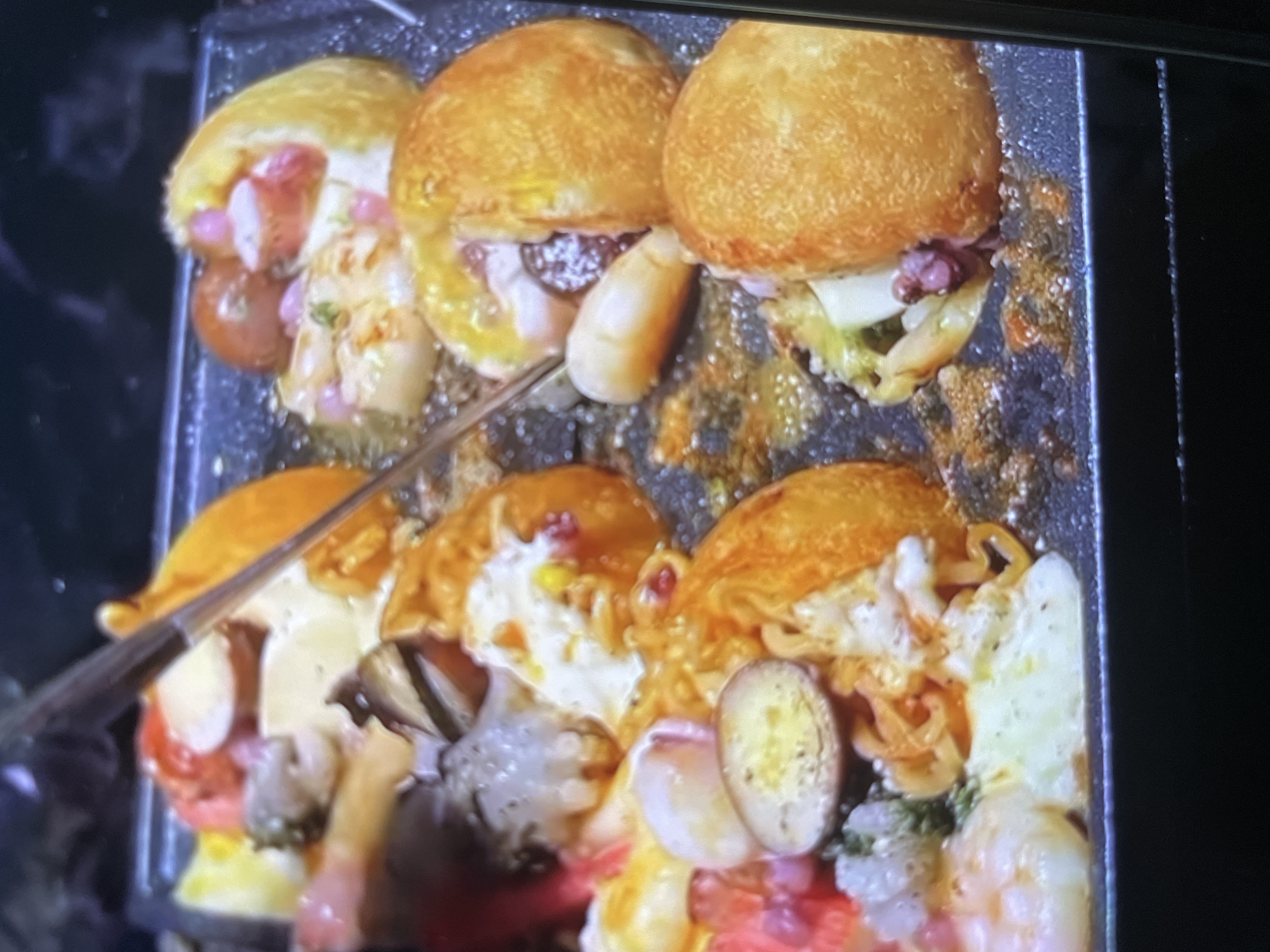 Seafood Snack | ["shrimp","octopus","cheese","noodles","fried dough"] | ["seafood:200g","fried dough:150g","vegetables:100g"] | |
