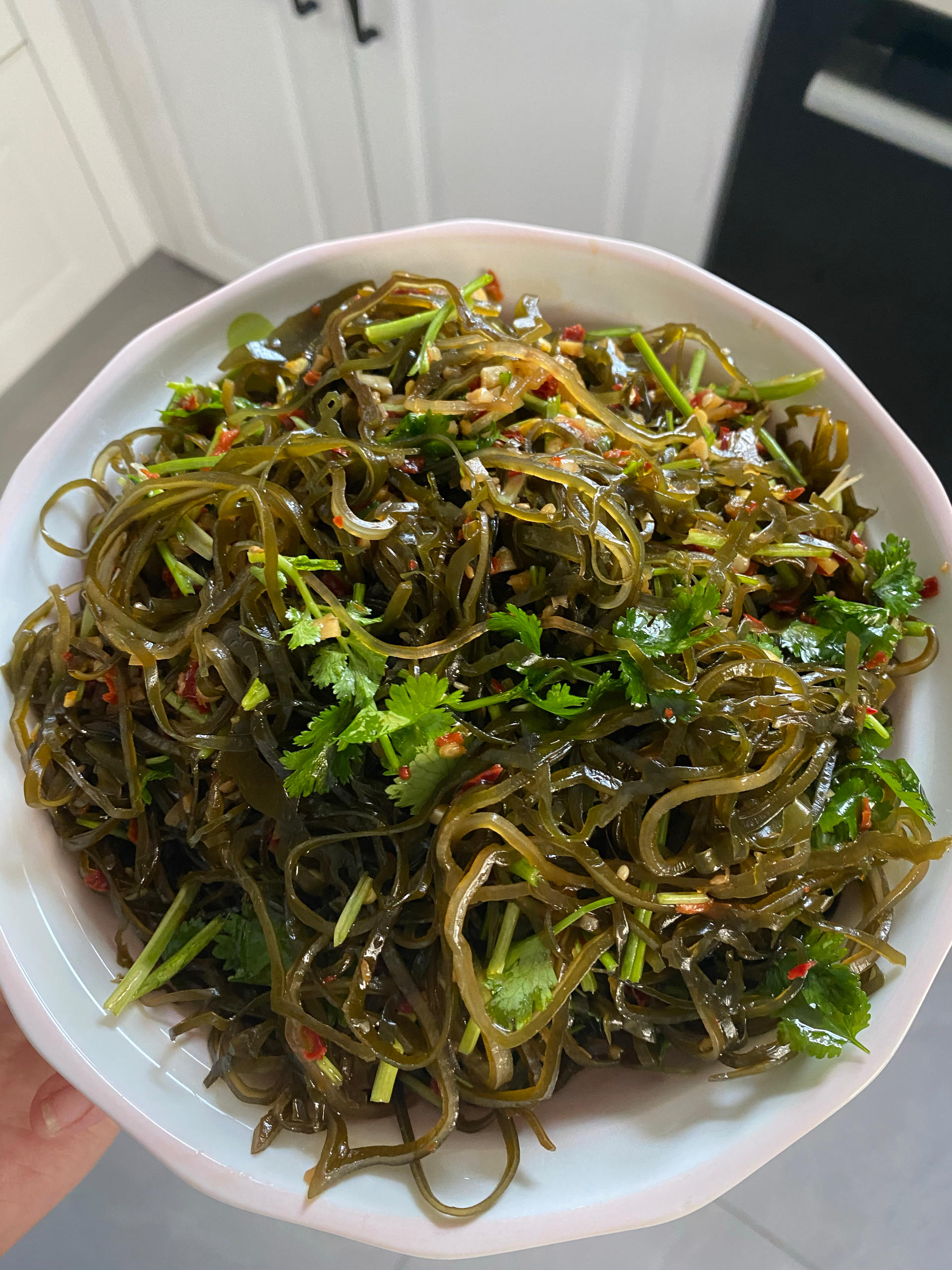 Seaweed Salad | ["seaweed","cilantro","chili","garlic"] | ["seaweed:200g","cilantro:50g","spices:10g"] | |