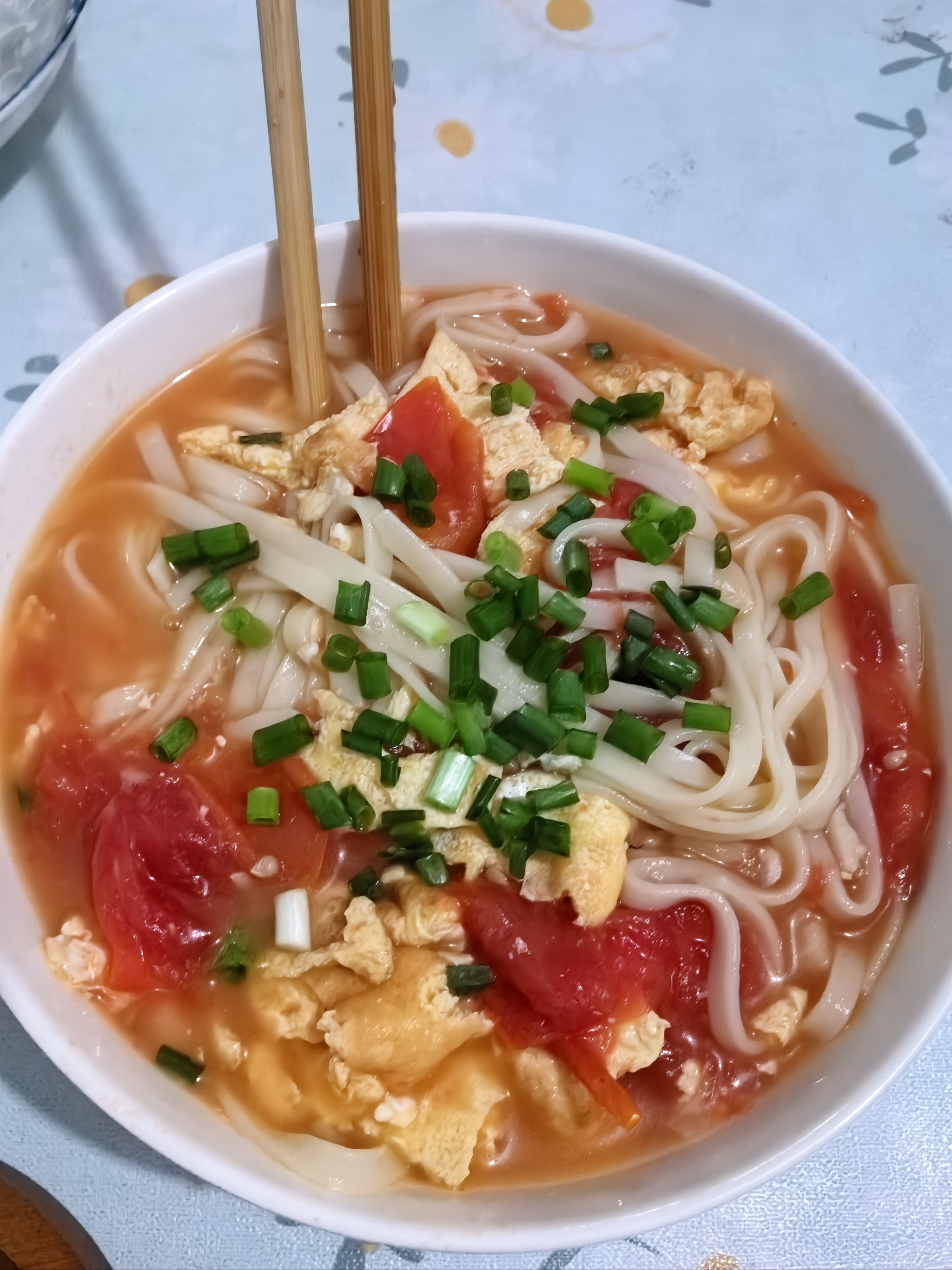 Noodle Soup with Eggs and Vegetables | ["noodles","eggs","tomatoes","green onions"] | ["noodles:200g","eggs:50g","tomatoes:100g","green onions:10g"] | |
