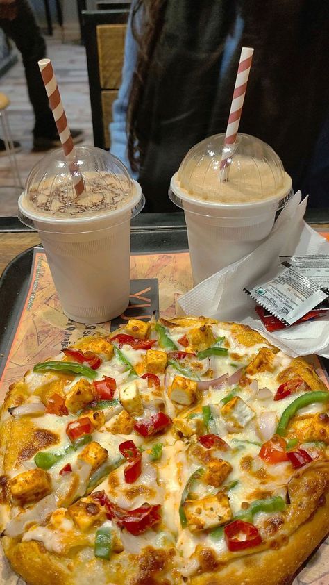 Vegetable Pizza | ["pizza dough","cheese","bell peppers","onions","tomatoes","paneer"] | ["pizza:400g","drinks:300g"] | |