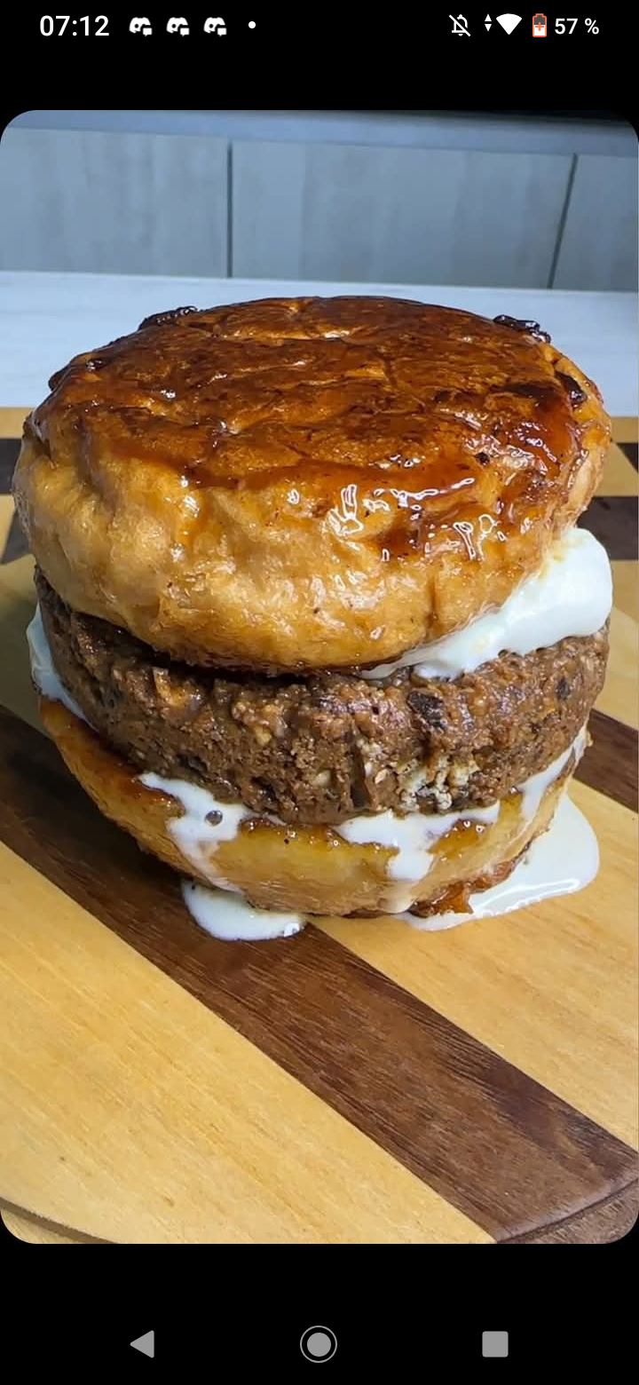 Doughnut Burger | ["doughnut","burger patty","sauce"] | ["doughnut:200g","burger patty:150g","sauce:50g"] | |