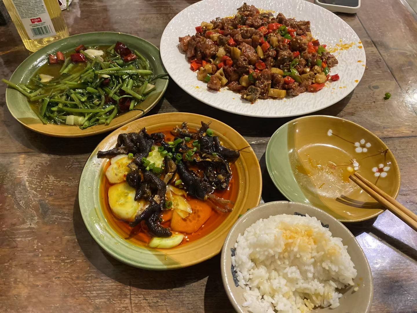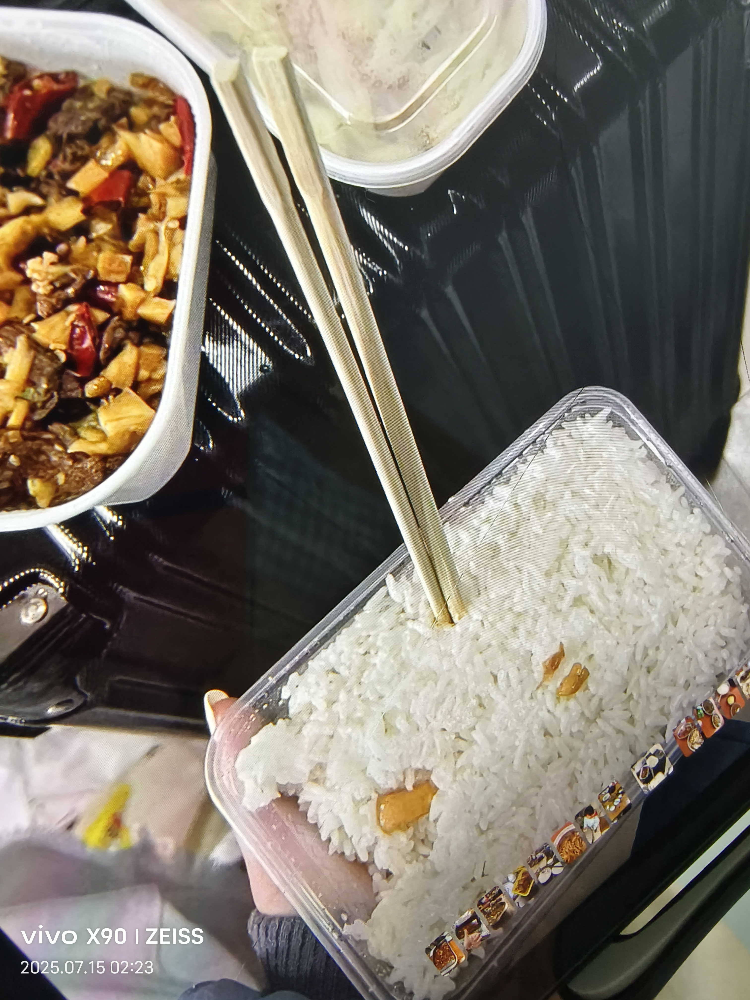 Mixed Chinese Dishes | ["rice","beef","vegetables","spices"] | ["rice:200g","meat dish:250g","vegetable dish:150g"] | |