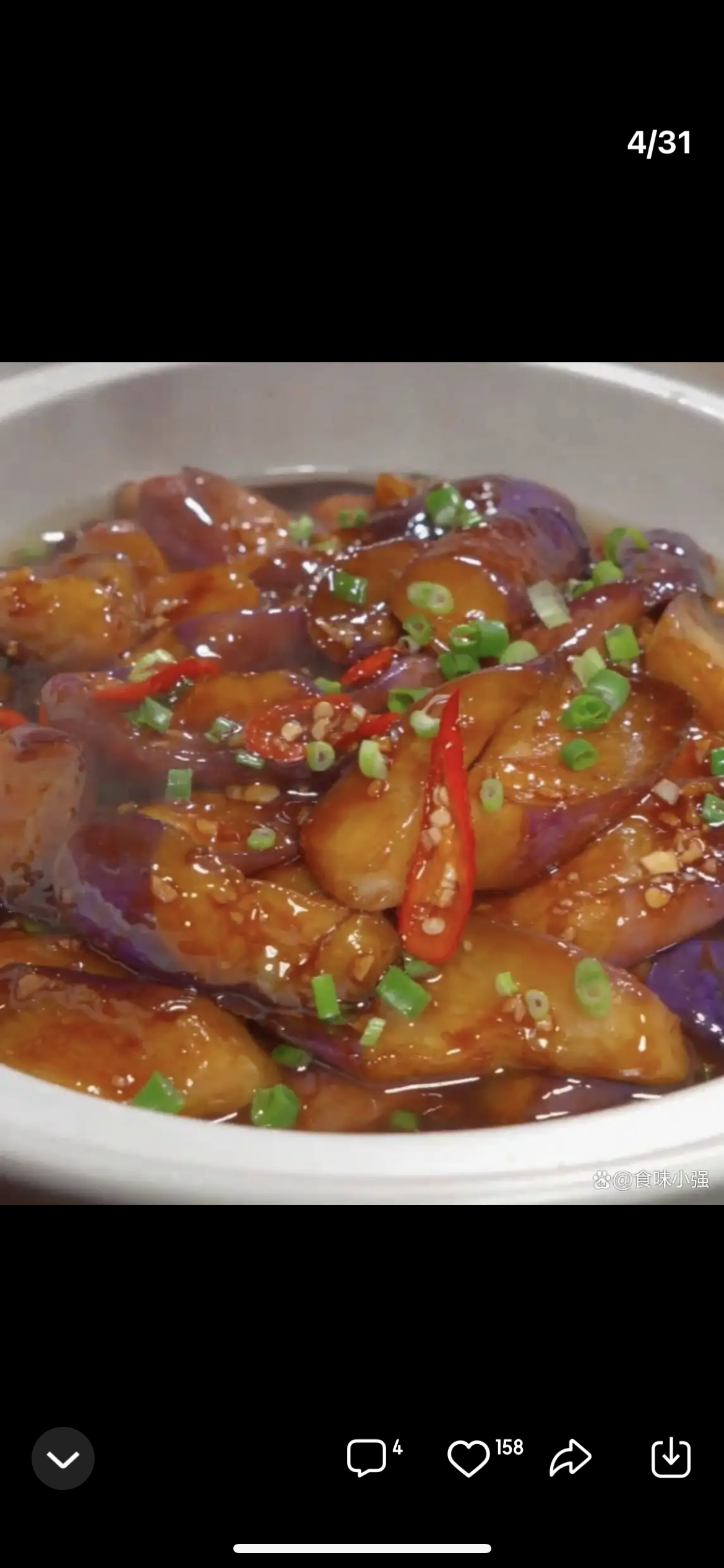 Stir-fried Eggplant | ["eggplant","chicken","green onions","red chili","soy sauce"] | ["eggplant:200g","chicken:100g","sauce:50g"] | |