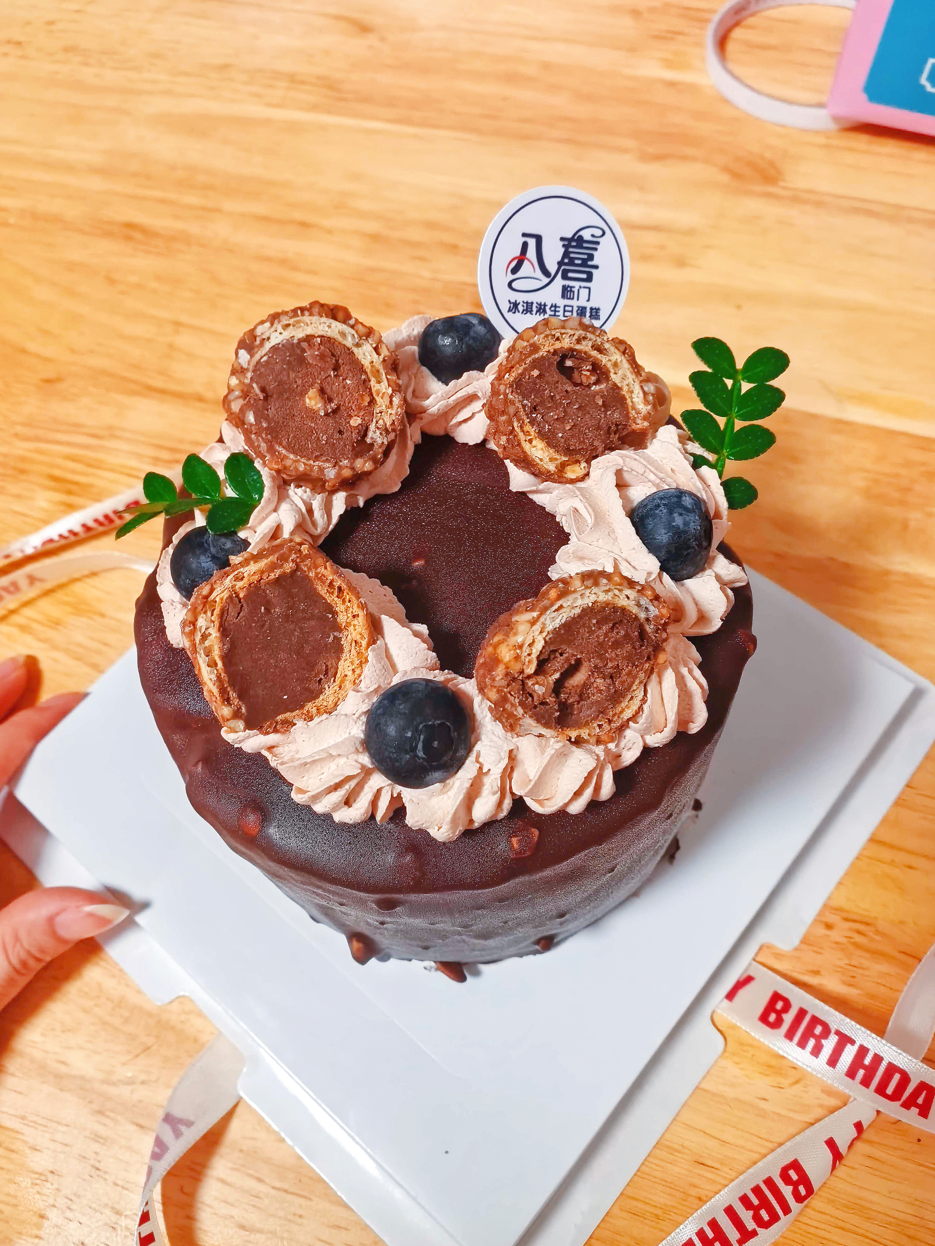 Chocolate Cake | ["chocolate","flour","sugar","butter","cream","blueberries"] | ["cake:200g"] | |