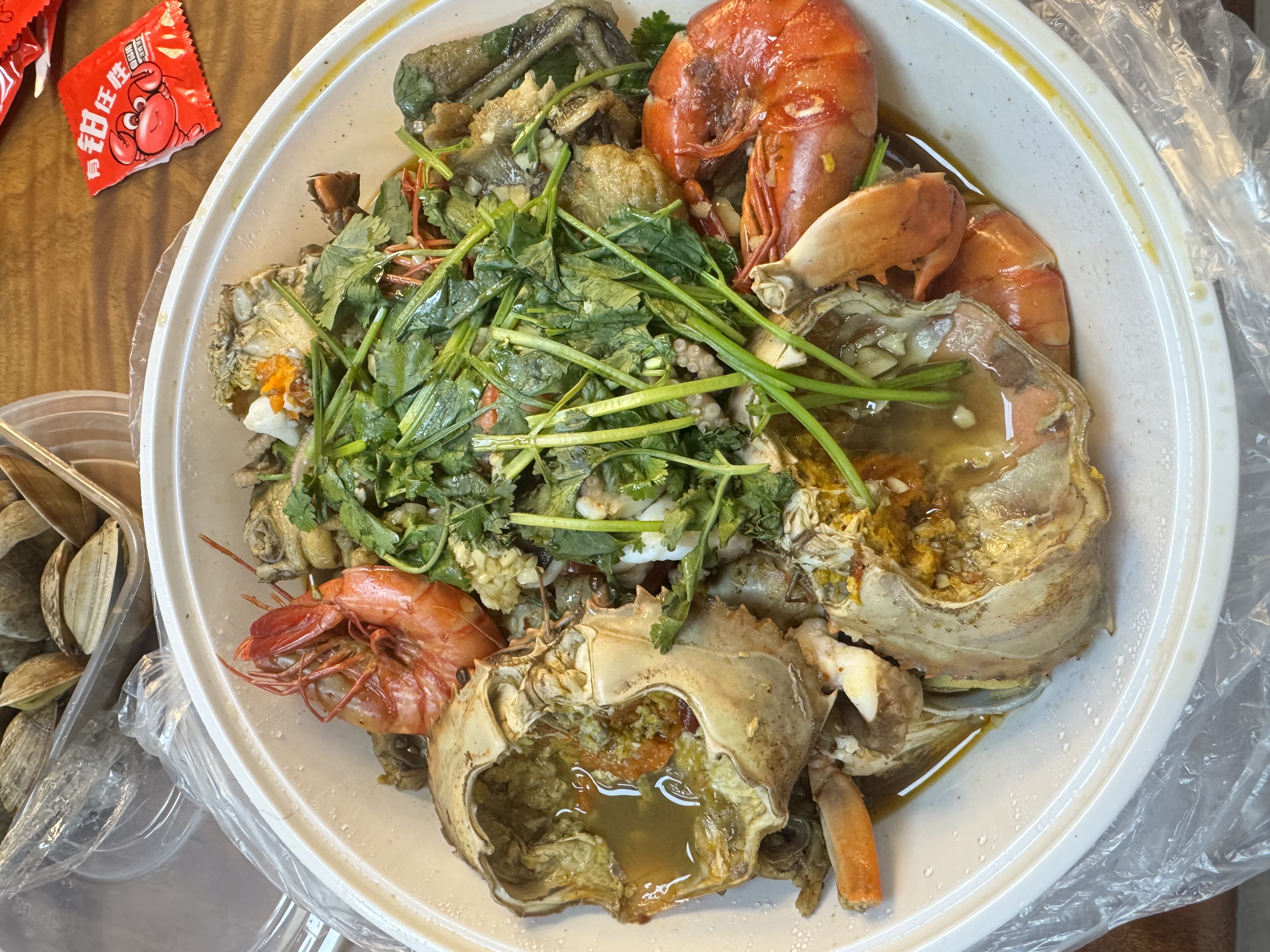 Seafood Platter | ["shrimp","crab","cilantro","spices"] | ["shrimp:200g","crab:150g","vegetables:100g"] | |