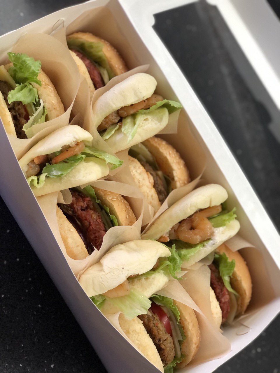 Steamed Buns with Toppings | ["flour","meat","vegetables","seasoning"] | ["buns:200g","toppings:50g"] | |