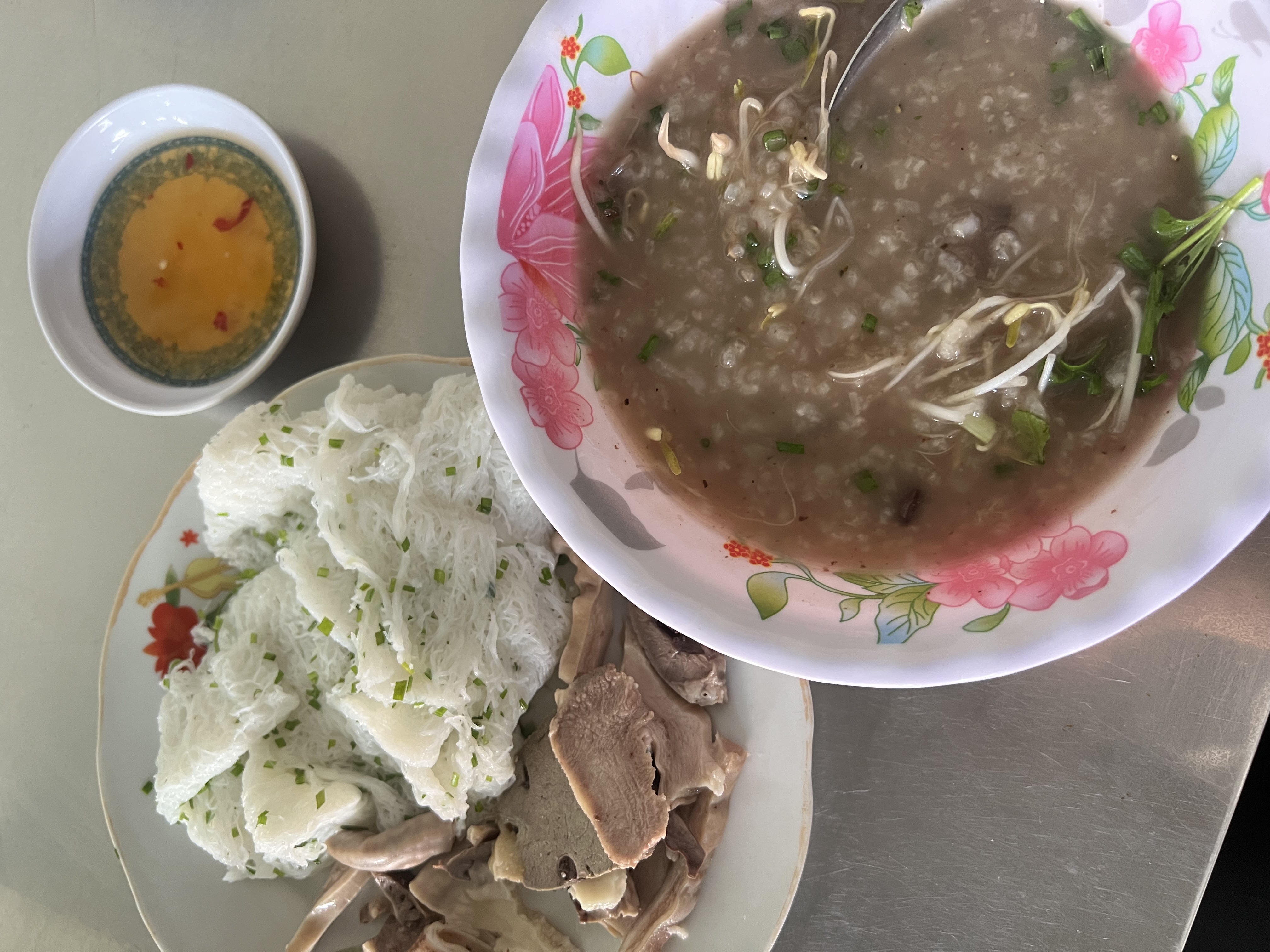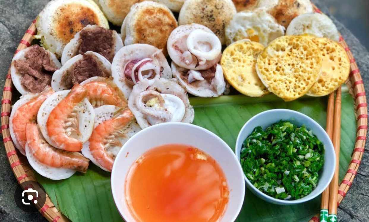 Vietnamese Pancakes with Seafood | ["shrimp","meat","pancakes","herbs","dipping sauce"] | ["shrimp:200g","meat:150g","pancakes:250g"] | |