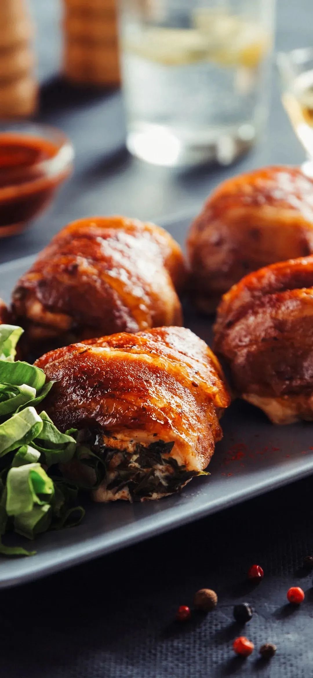 Stuffed Chicken Roll | ["chicken","spinach","seasonings","lettuce"] | ["chicken:200g","greens:50g"] | |