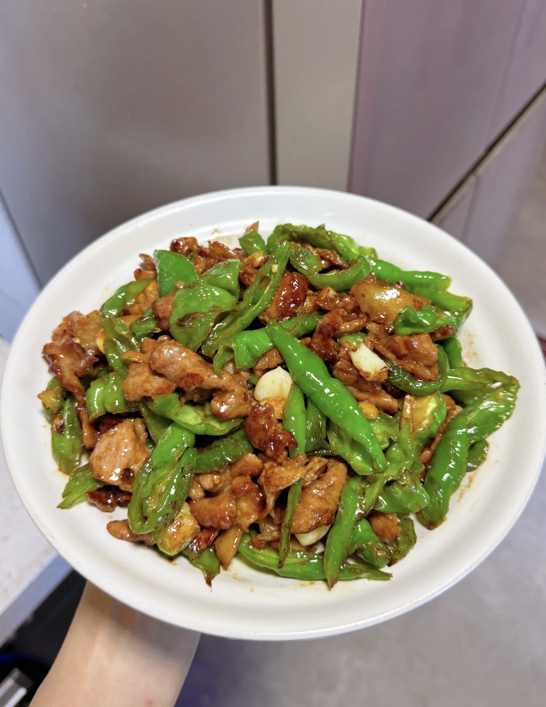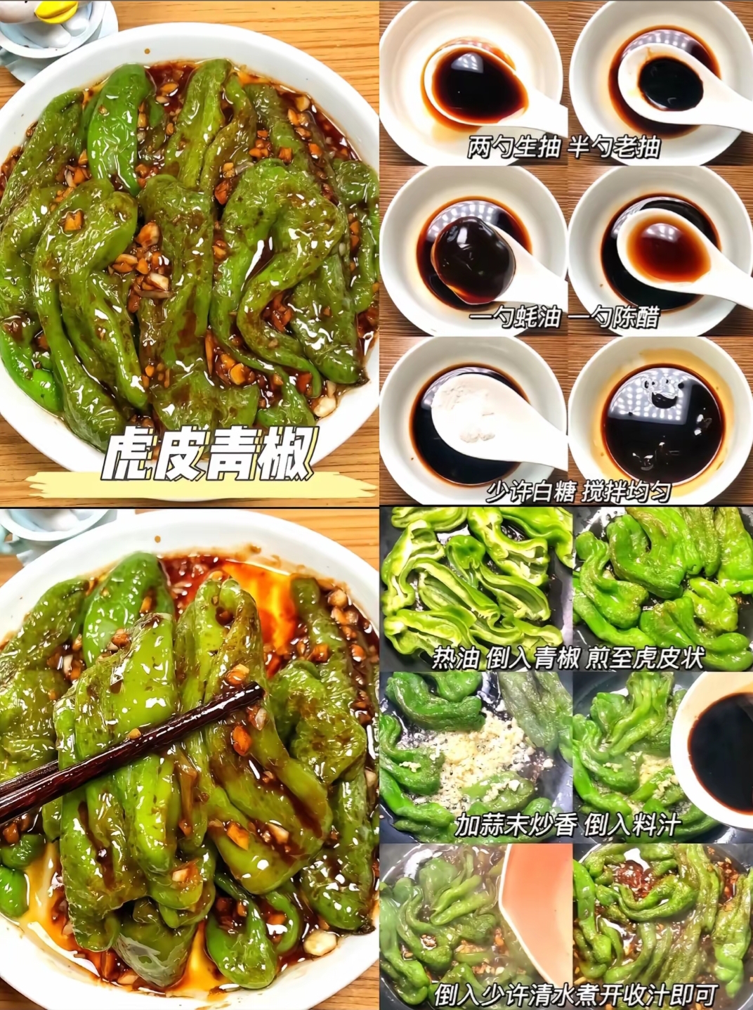 Stir-fried Green Peppers | ["green peppers","soy sauce","garlic","sugar"] | ["green peppers:300g","sauce:50g"] | |