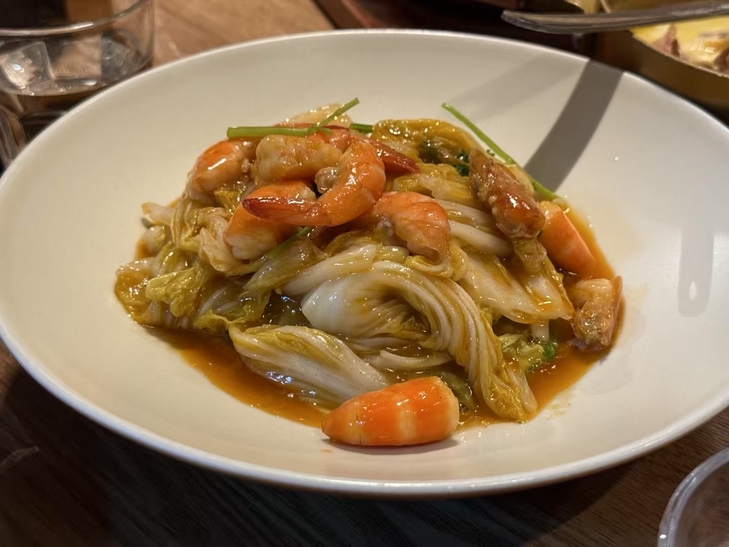 Shrimp Stir-Fry | ["shrimp","cabbage","green onions","sauce"] | ["shrimp:150g","vegetables:200g"] | |