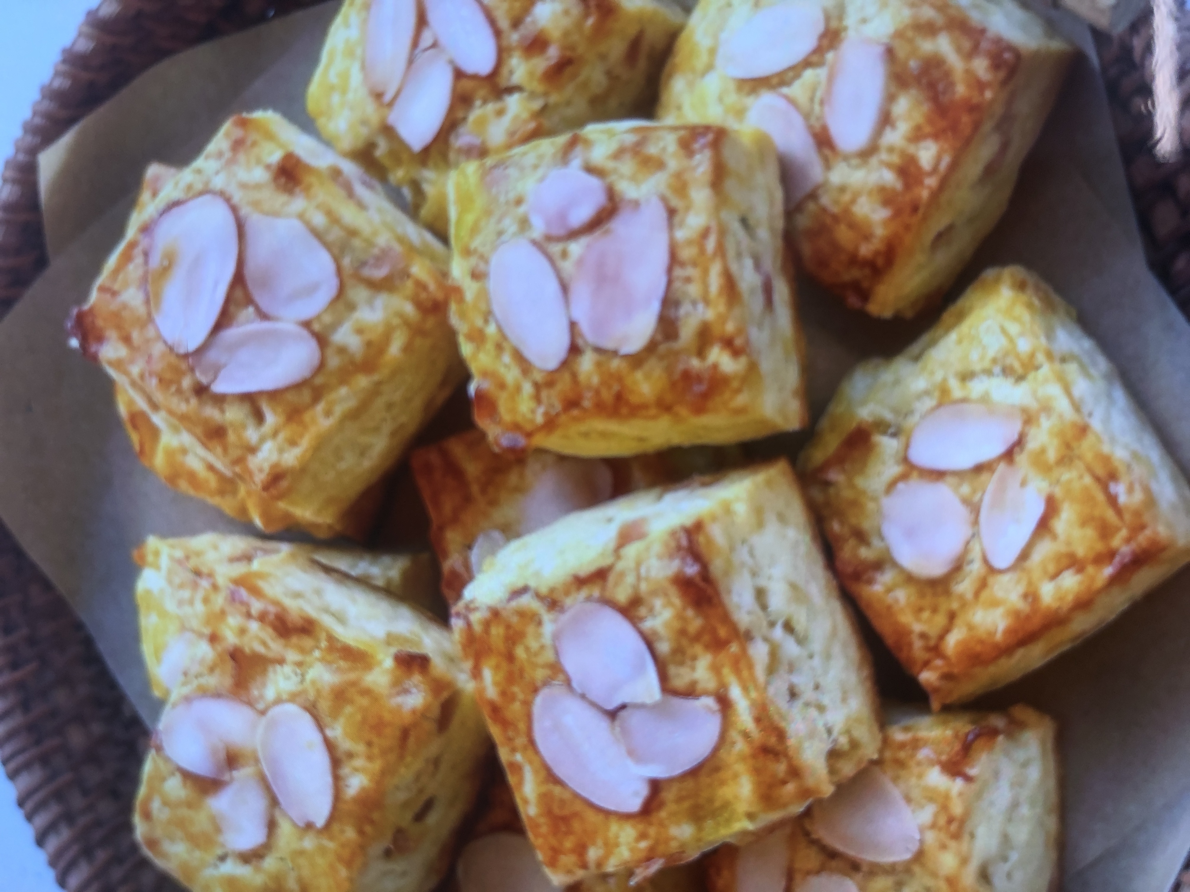 Almond Scones | ["flour","butter","sugar","almonds","milk"] | ["scone:100g"] | |