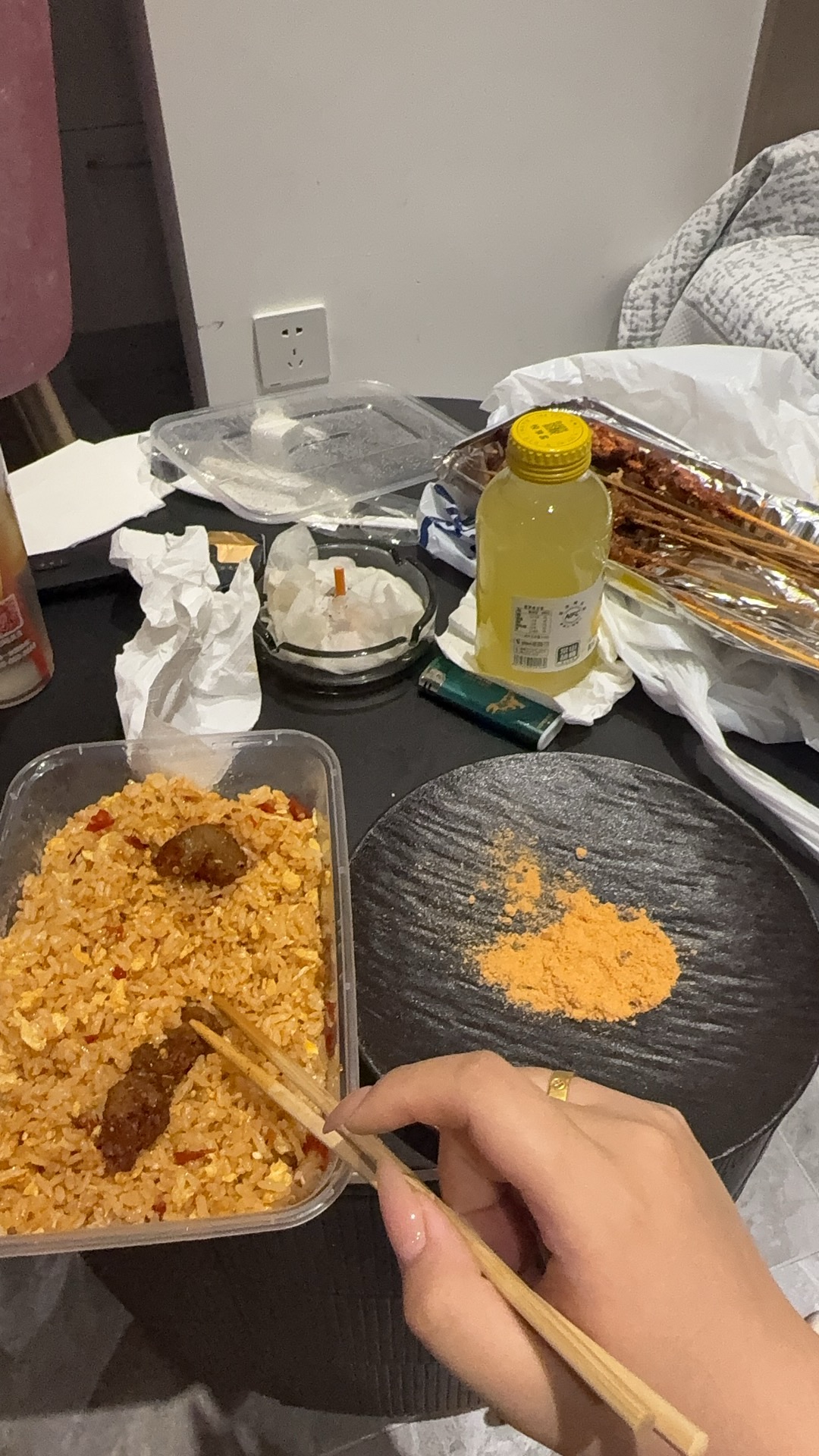 Fried Rice with Meat | ["fried rice","meat","spices"] | ["fried rice:350g","meat:50g"] | |