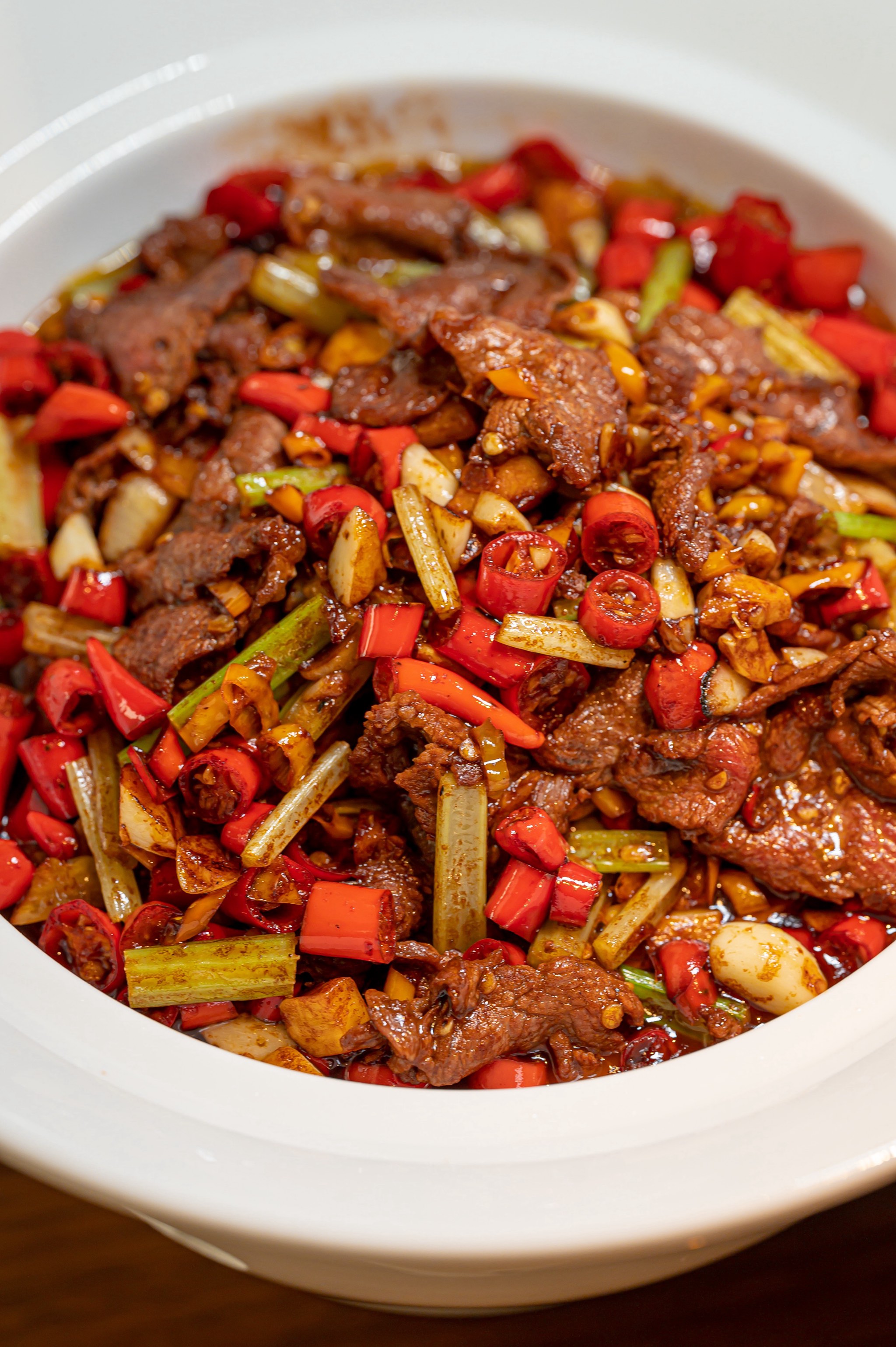 Spicy Beef Stir-Fry | ["beef","bell peppers","onions","chili peppers","garlic","soy sauce"] | ["beef:300g","bell peppers:100g","onions:50g","chili peppers:50g"] | |
