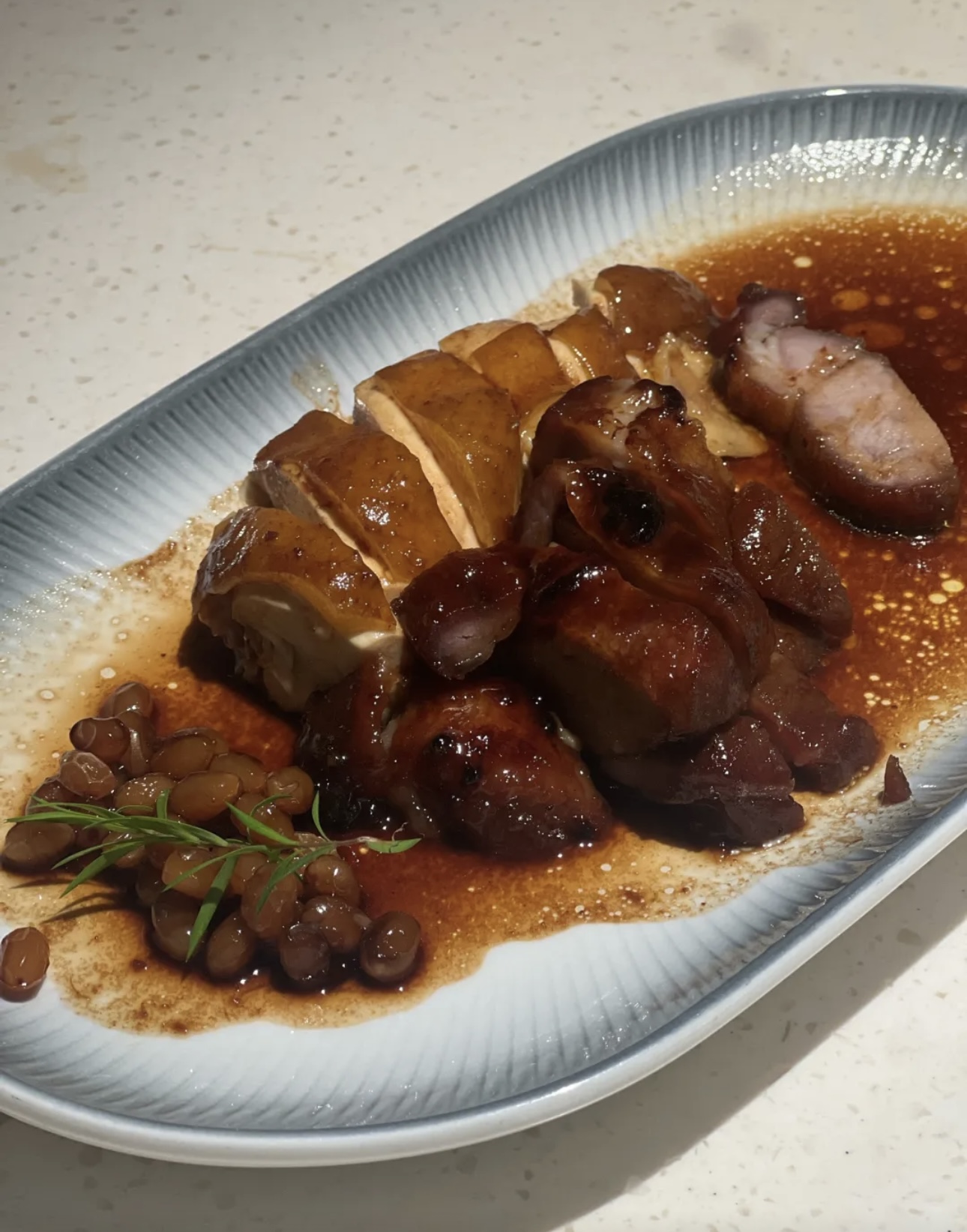 Assorted Chinese Dishes | ["Duck","Lobster","Pancakes","Sauces"] | ["Duck:200g","Lobster:150g","Pancakes:100g","Sauces:50g"] | |