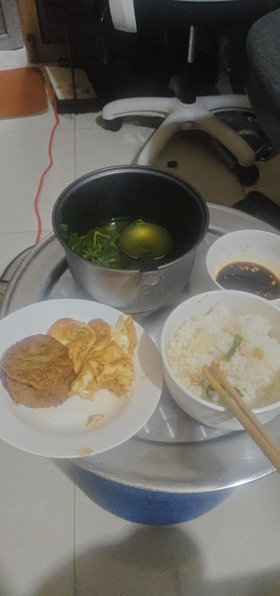 Mixed Rice Meal | ["rice","egg","meat patty","soup"] | ["rice:200g","egg:100g","meat patty:150g","soup:150g"] | |