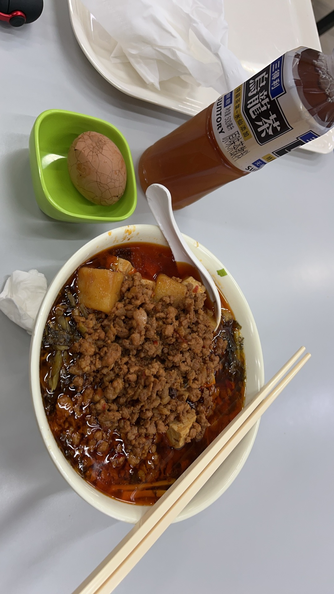 Spicy Noodles with Minced Meat | ["noodles","minced meat","sauce","egg"] | ["noodles:300g","minced meat:100g","sauce:50g","egg:50g"] | |