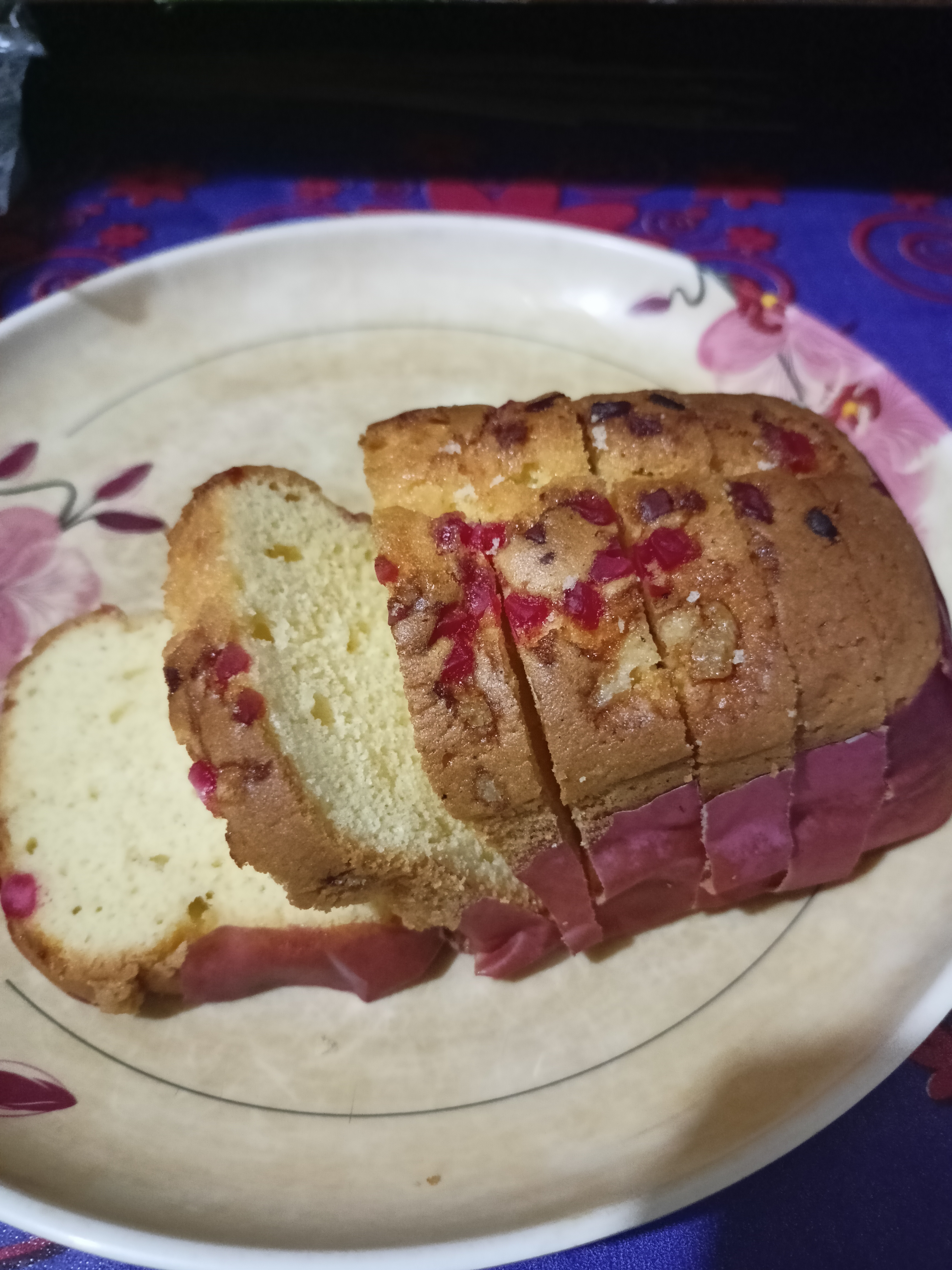 Sweet Bread | ["flour","sugar","eggs","butter","fruit bits"] | ["bread:200g"] | |