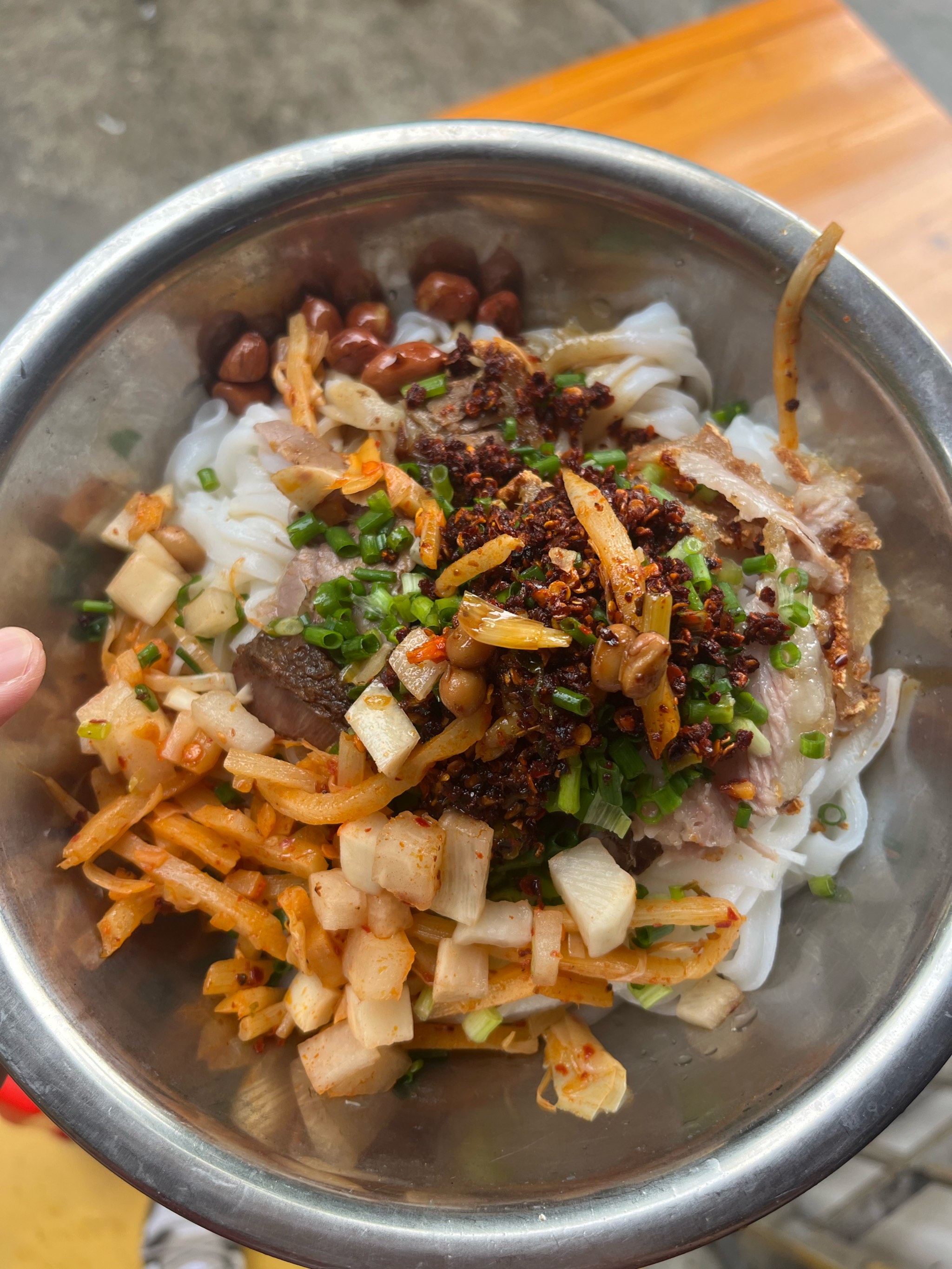 Noodle Soup | ["rice noodles","broth","vegetables","meat"] | ["noodles:200g","broth:300g"] | |