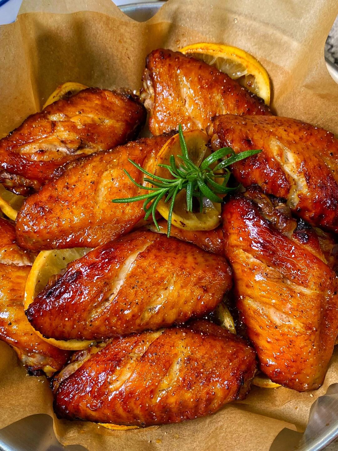 Grilled Chicken Wings | ["chicken wings","lemon","rosemary"] | ["chicken wings:300g","lemon:50g"] | |