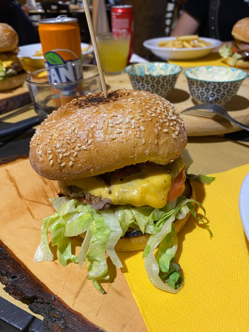 Cheeseburger | ["beef patty","cheddar cheese","lettuce","sesame bun","tomato"] | ["burger:250g","lettuce:50g","cheese:30g"] | |