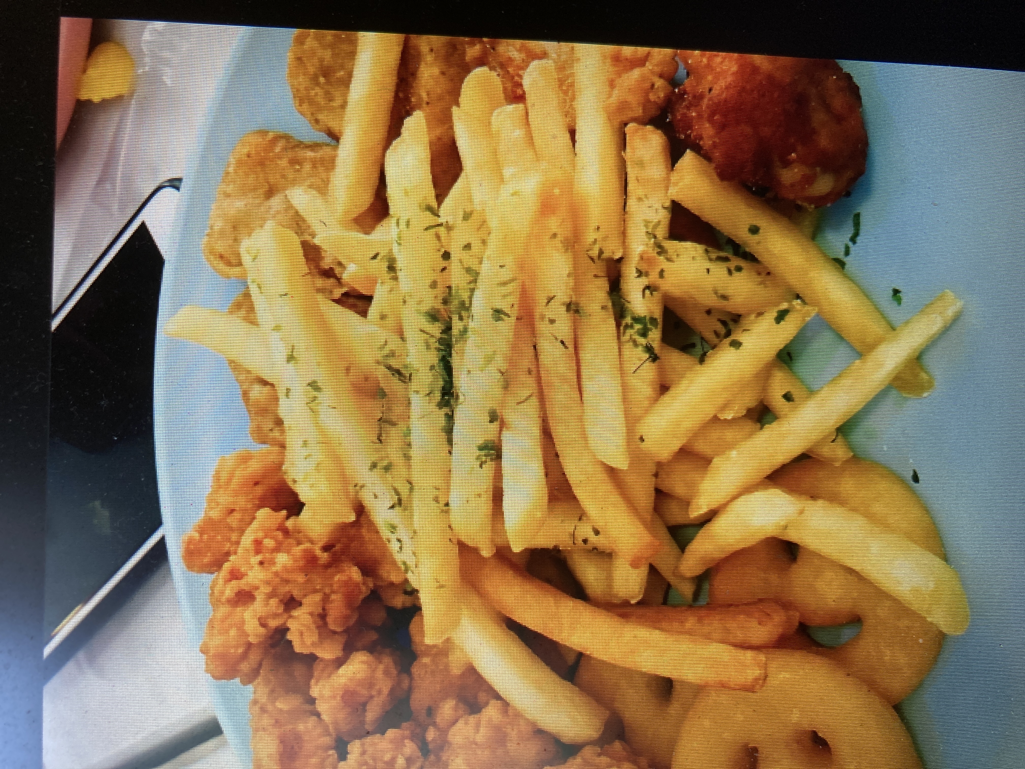 Fried Chicken and Fries | ["fries","fried chicken","seasoning"] | ["fries:300g","fried chicken:200g"] | |