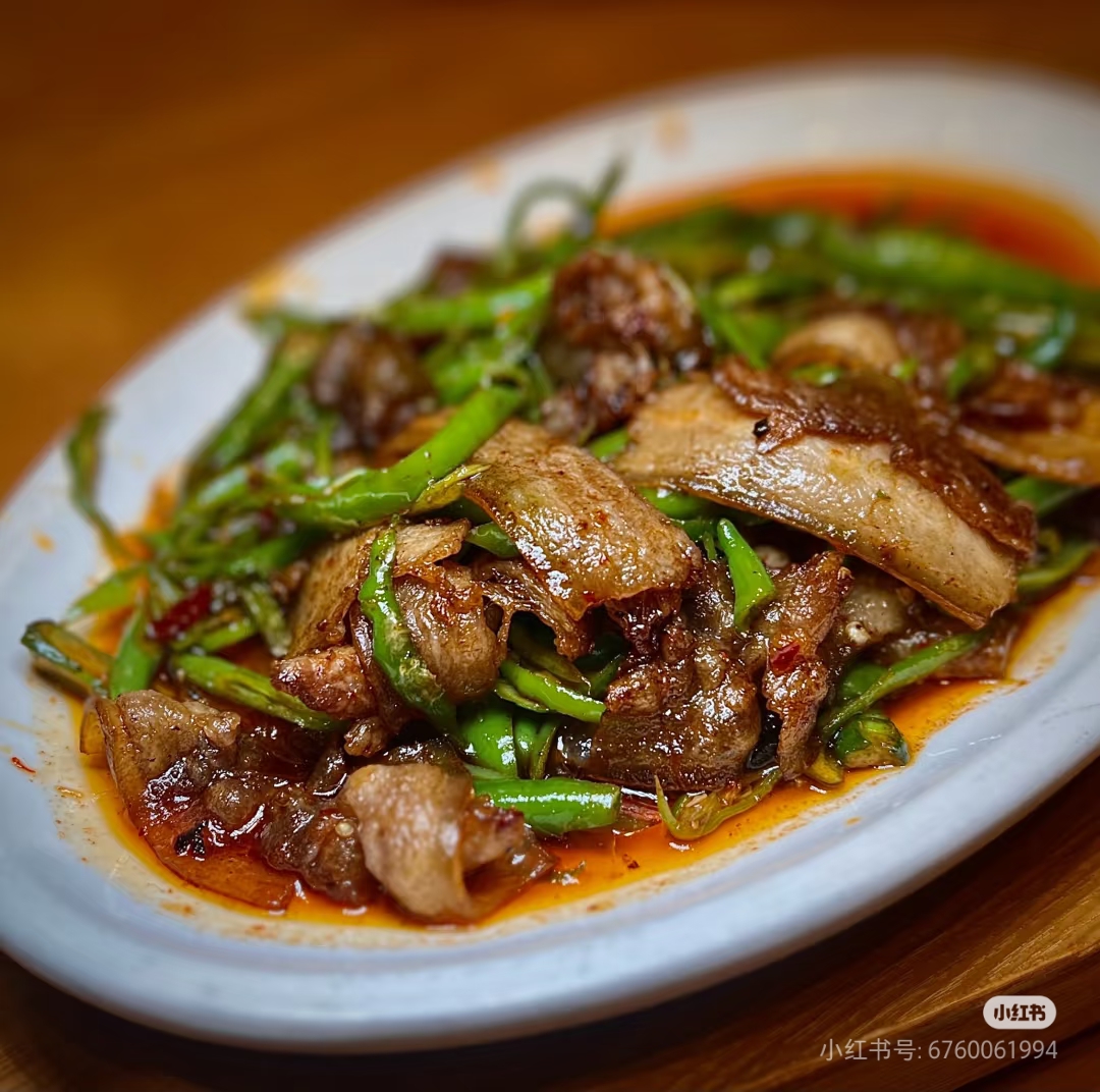 Stir-fried Meat with Vegetables | ["meat","green beans","sauce"] | ["meat:250g","green beans:100g","sauce:50g"] | |
