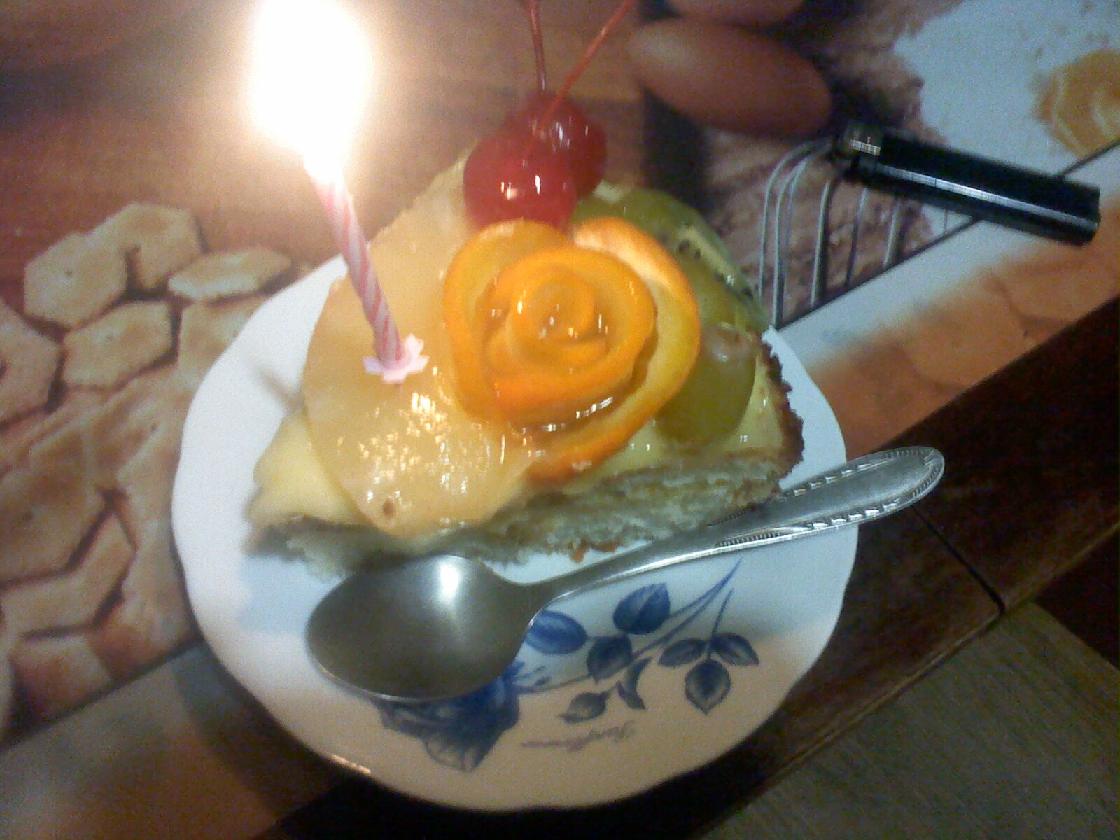 Fruit Cake | ["cake","fruit","cream"] | ["cake:150g","fruit:50g"] | |