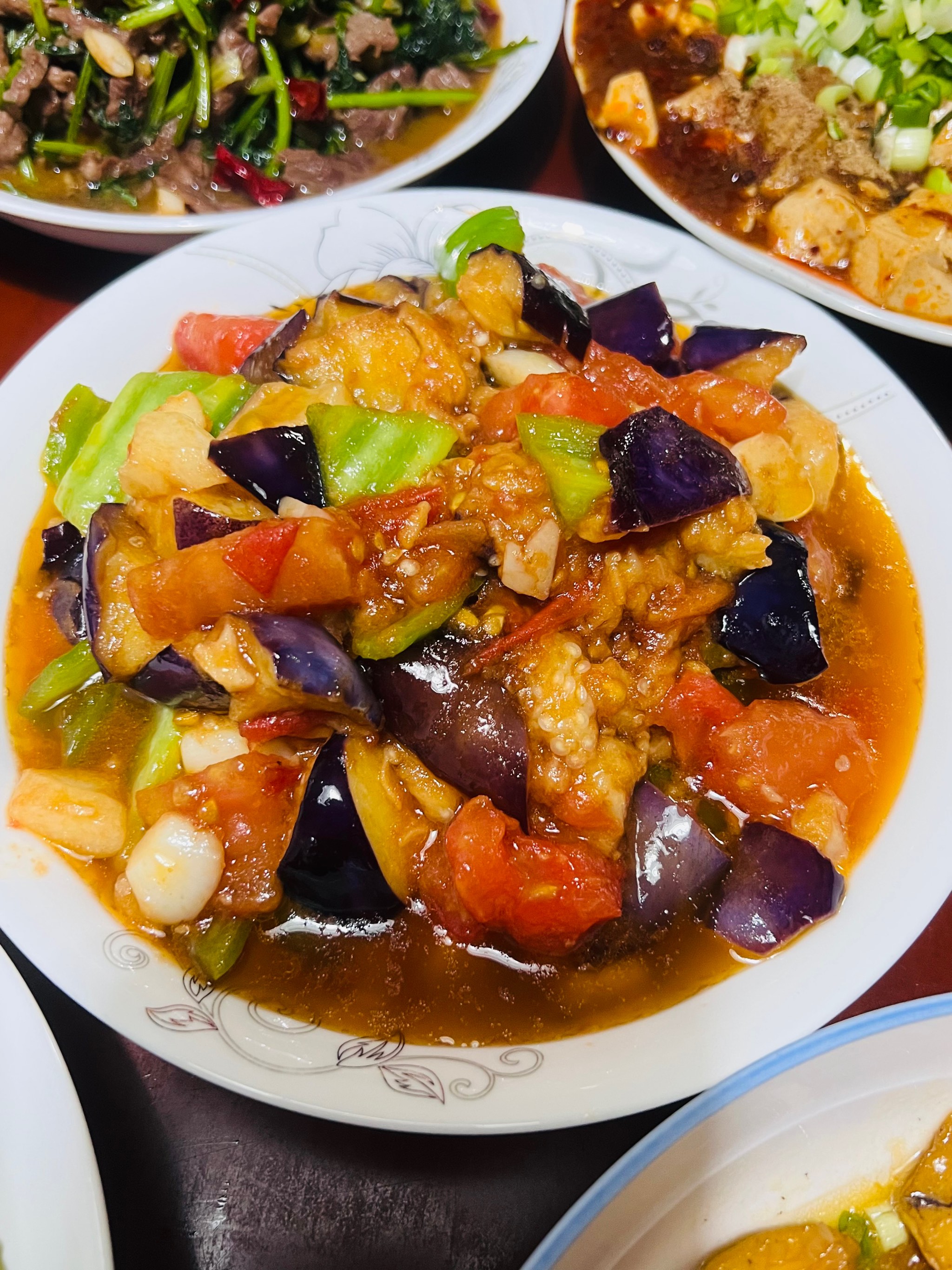 Vegetable Stir-Fry | ["eggplant","tomato","bell pepper","garlic","soy sauce"] | ["eggplant:150g","tomato:100g","bell pepper:100g"] | |
