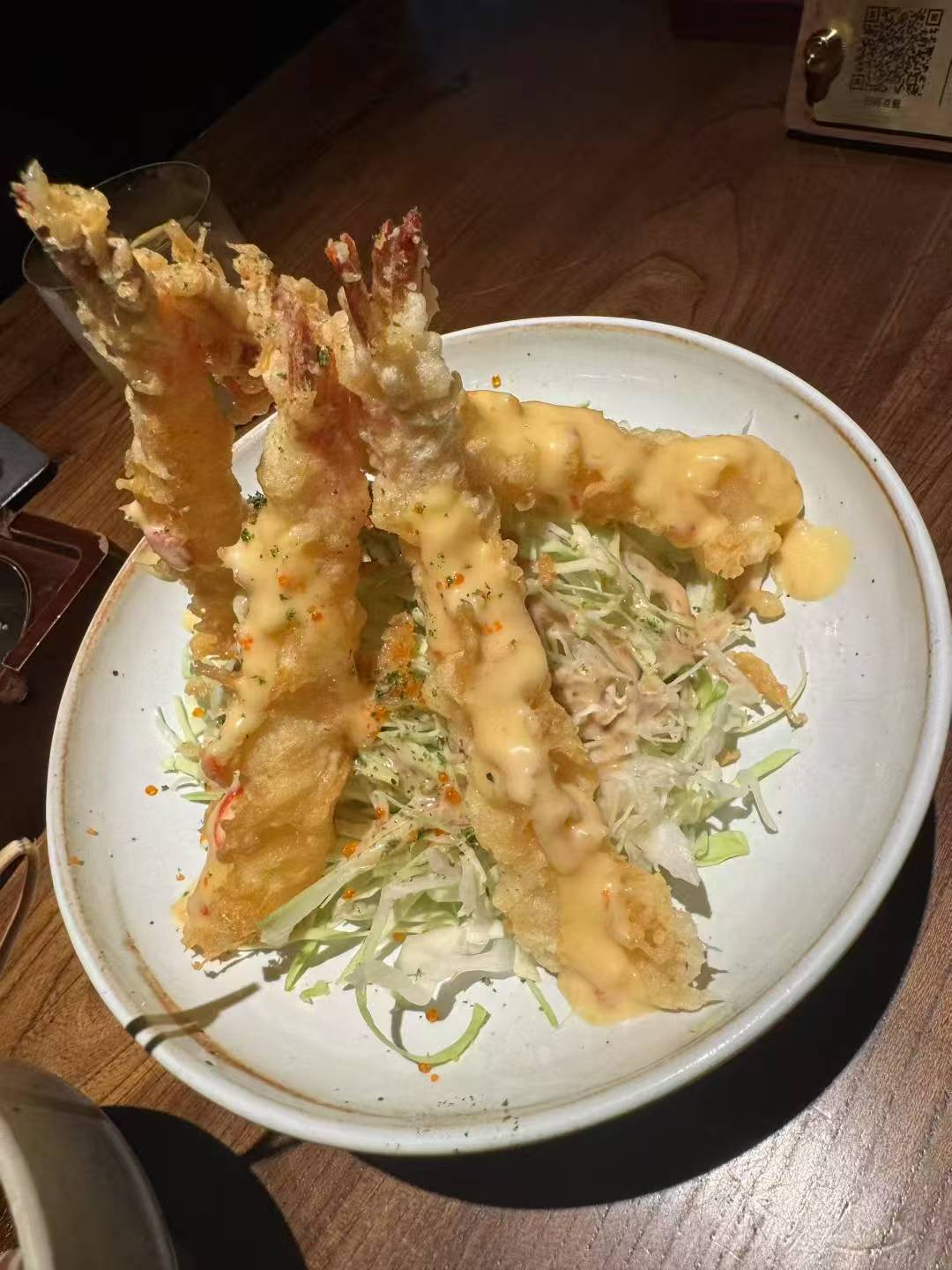 Shrimp Tempura | ["shrimp","tempura batter","cabbage","mayonnaise"] | ["shrimp:200g","salad:150g"] | |