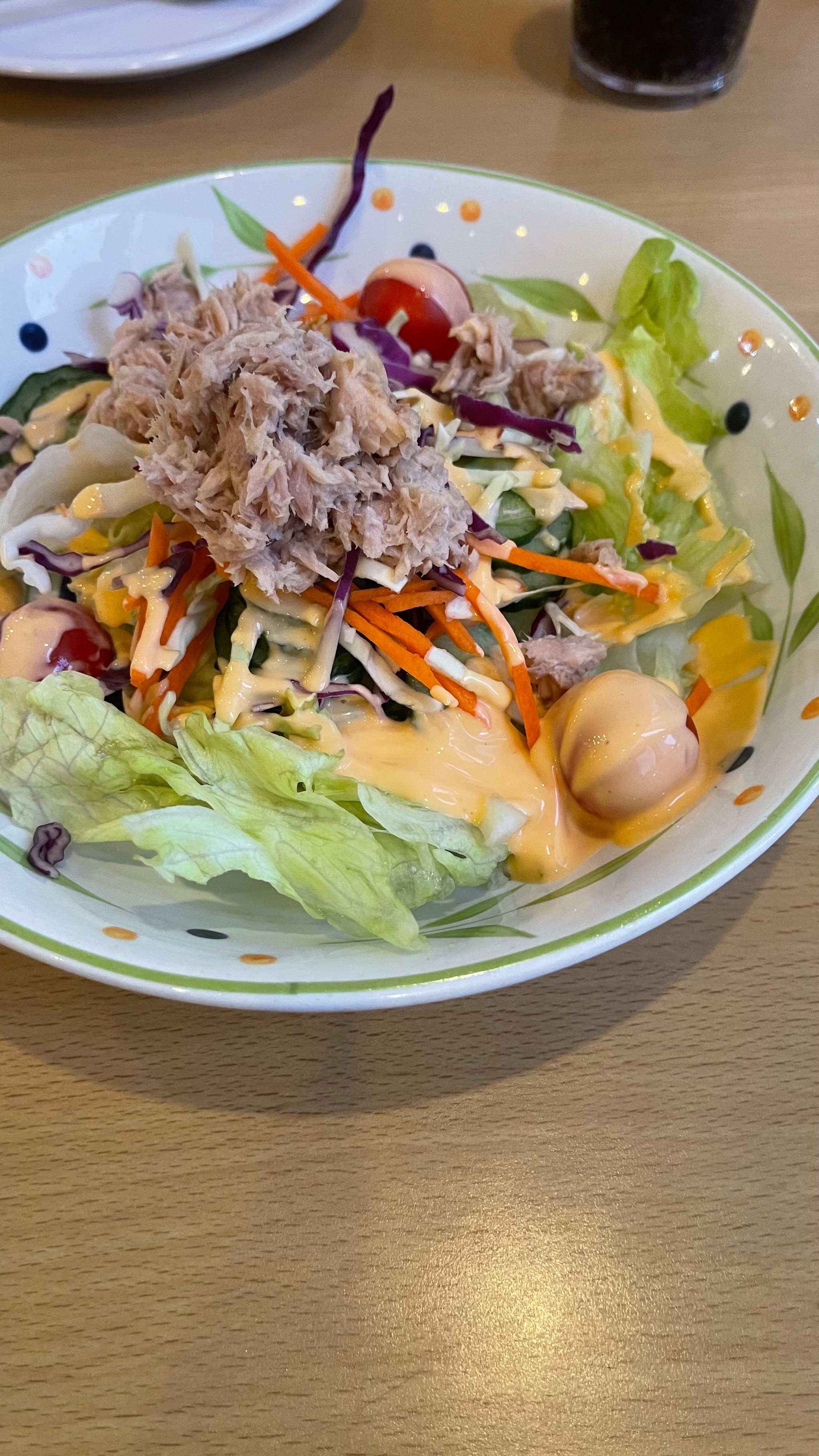Tuna Salad | ["tuna","lettuce","carrots","mayonnaise","cherry tomatoes"] | ["tuna:150g","lettuce:100g","carrots:50g","dressing:30g"] | |