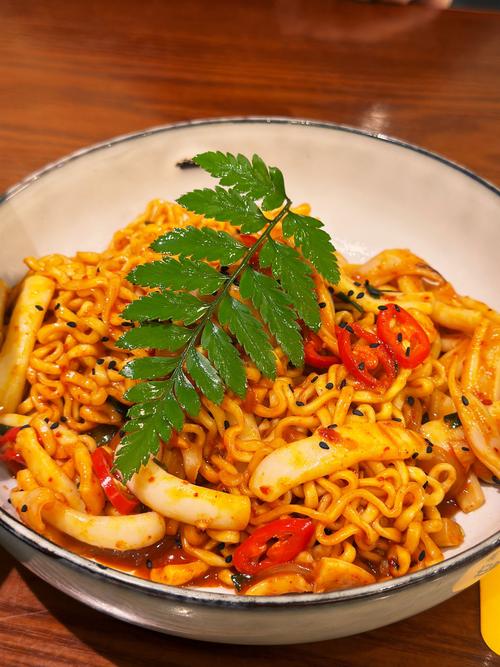 Spicy Noodles | ["noodles","squid","chili peppers","vegetables"] | ["noodles:300g","squid:100g","vegetables:50g"] | |