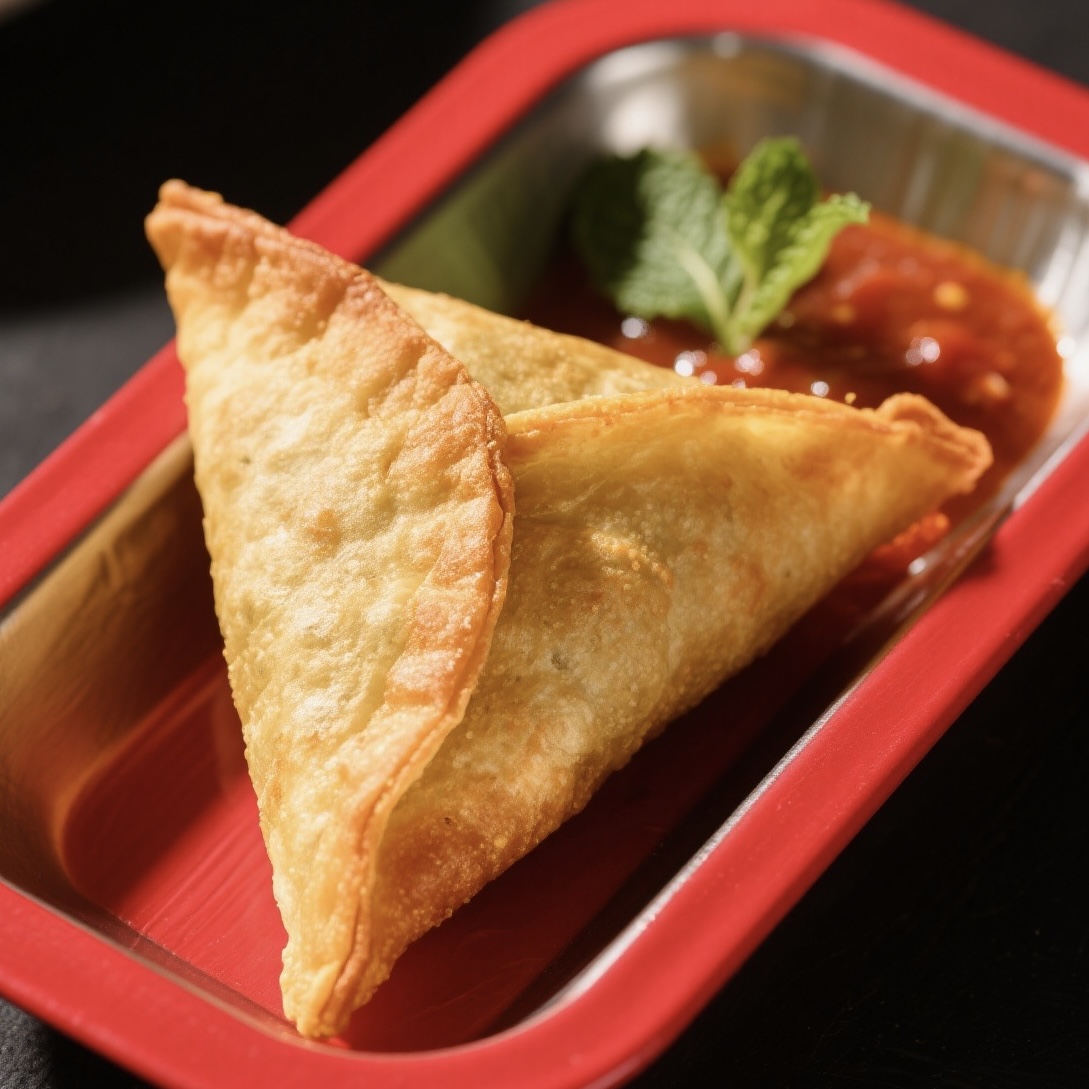 Samosa | ["potato","peas","spices","flour","oil","sauce"] | ["samosa:150g","sauce:50g"] | |