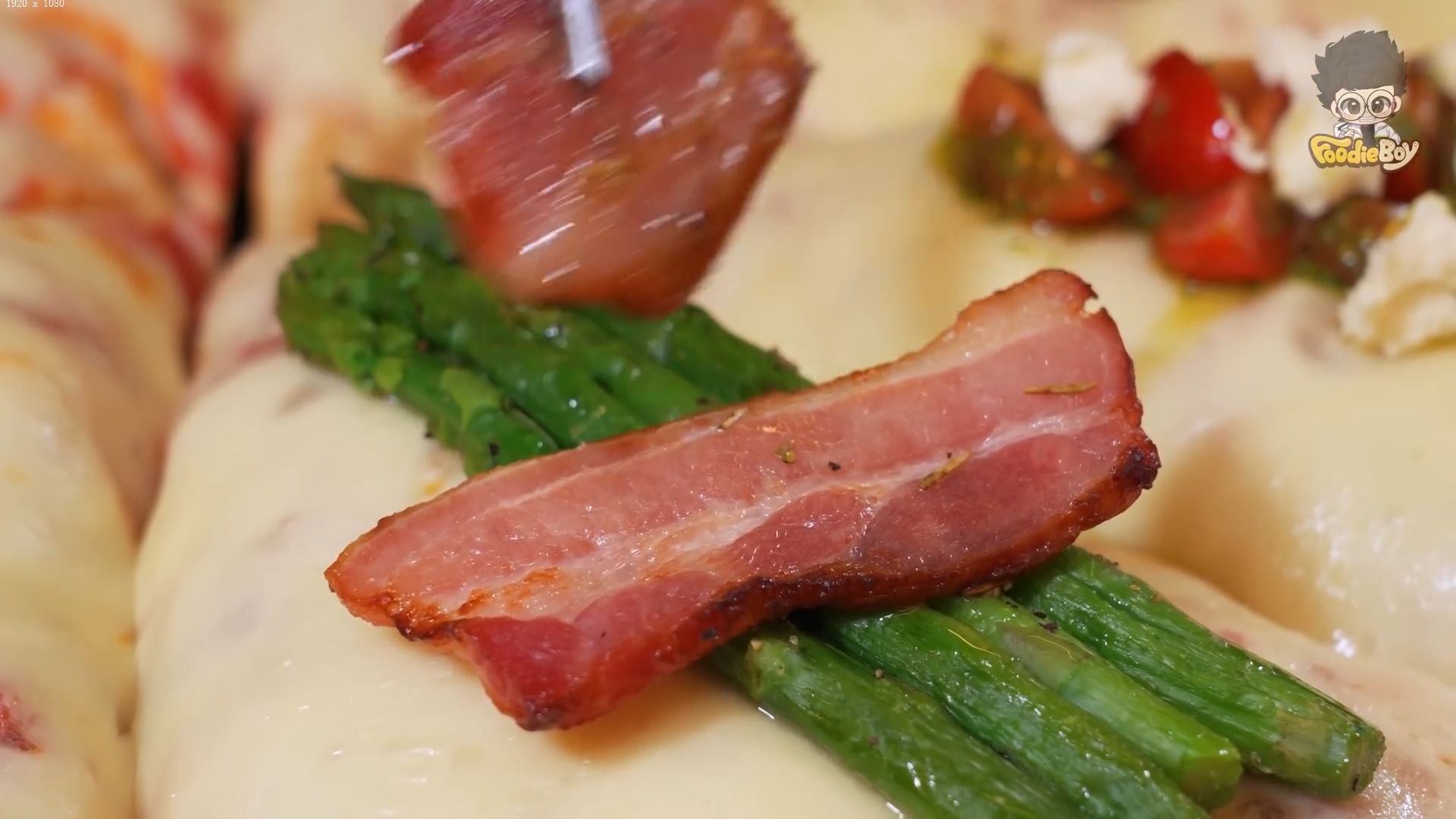 Bacon and Asparagus | ["bacon","asparagus","cream sauce"] | ["bacon:150g","asparagus:100g","sauce:100g"] | |