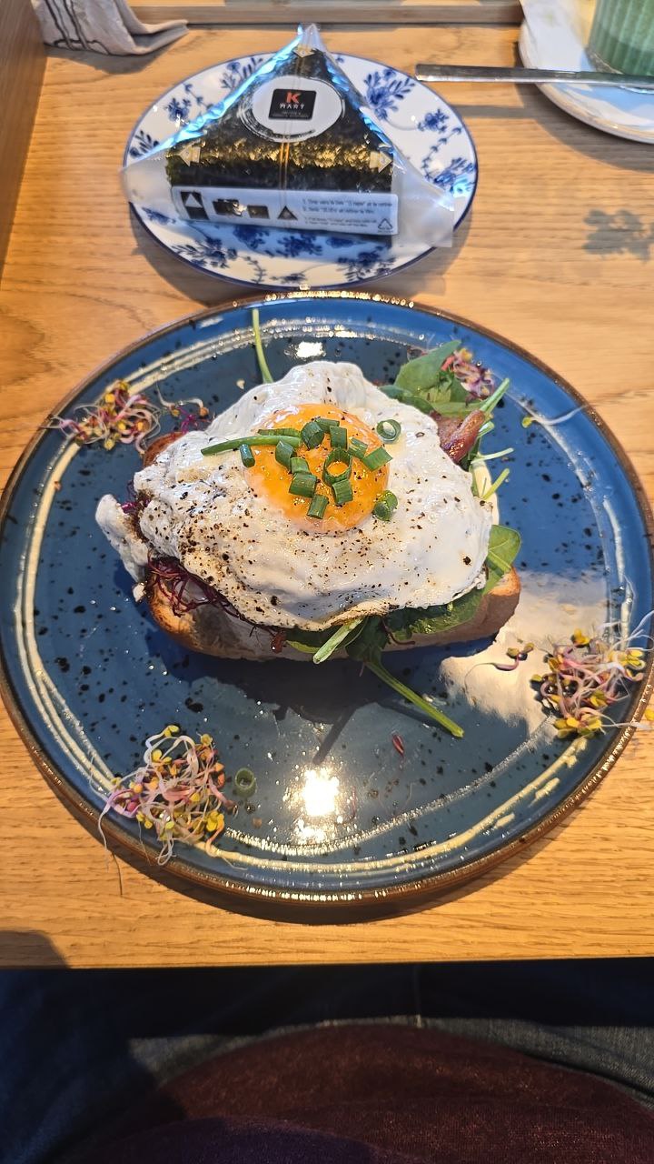 Egg on Toast | ["egg","bread","greens","sprouts"] | ["bread:100g","egg:50g","greens:50g"] | |