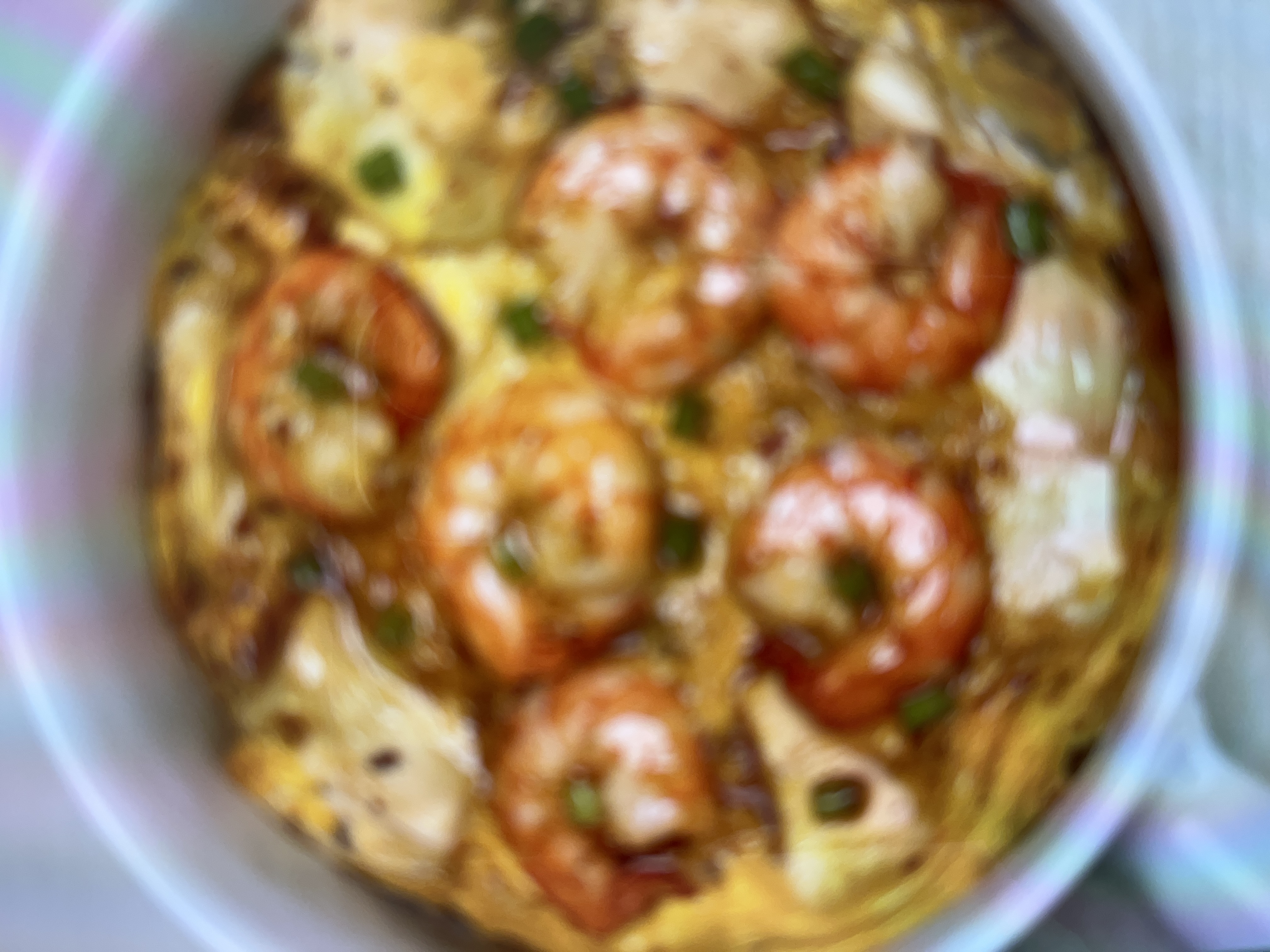 Shrimp Omelet | ["shrimp","eggs","green onions","seasoning"] | ["shrimp:150g","eggs:200g","vegetables:50g"] | |