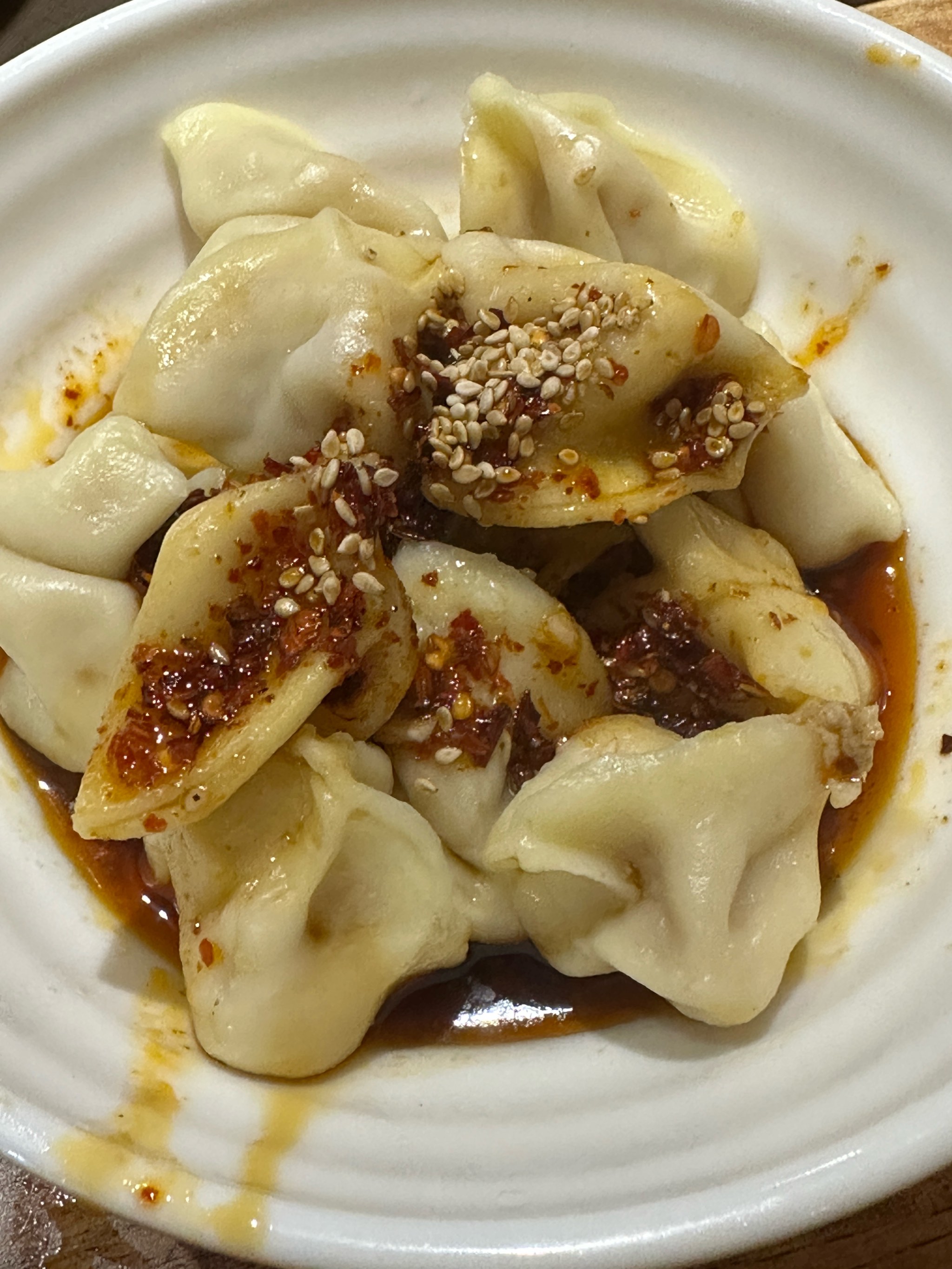 Dumplings | ["dumplings","sesame seeds","spicy sauce"] | ["dumplings:250g","sauce:50g"] | |