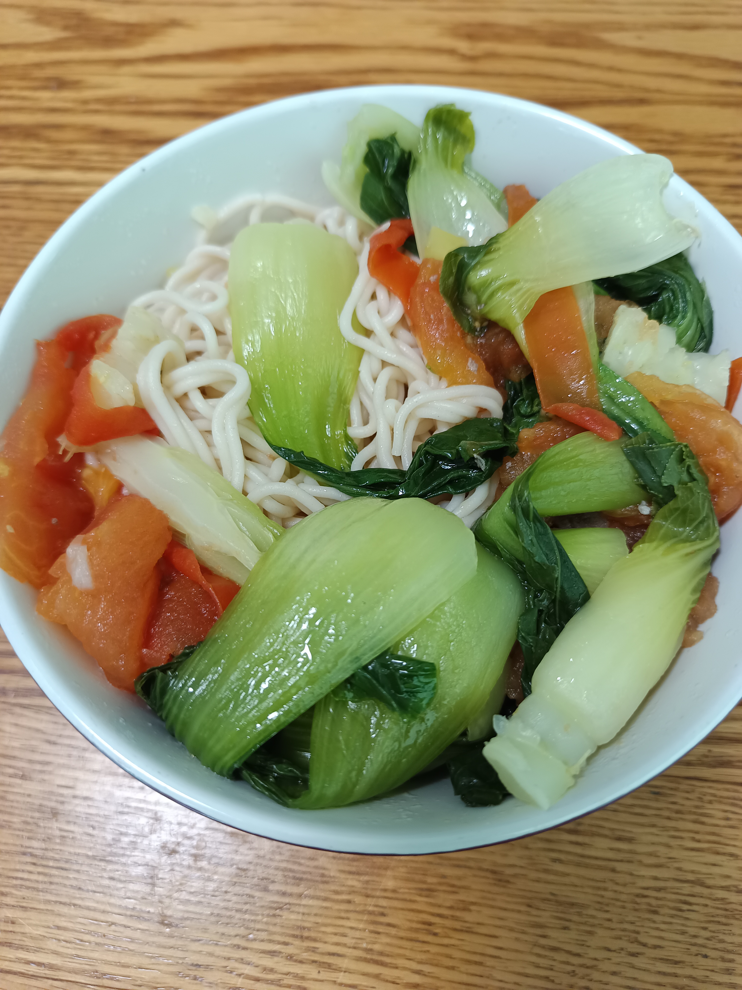 Vegetable Noodles | ["noodles","bok choy","tomato"] | ["noodles:200g","bok choy:100g","tomato:50g"] | |