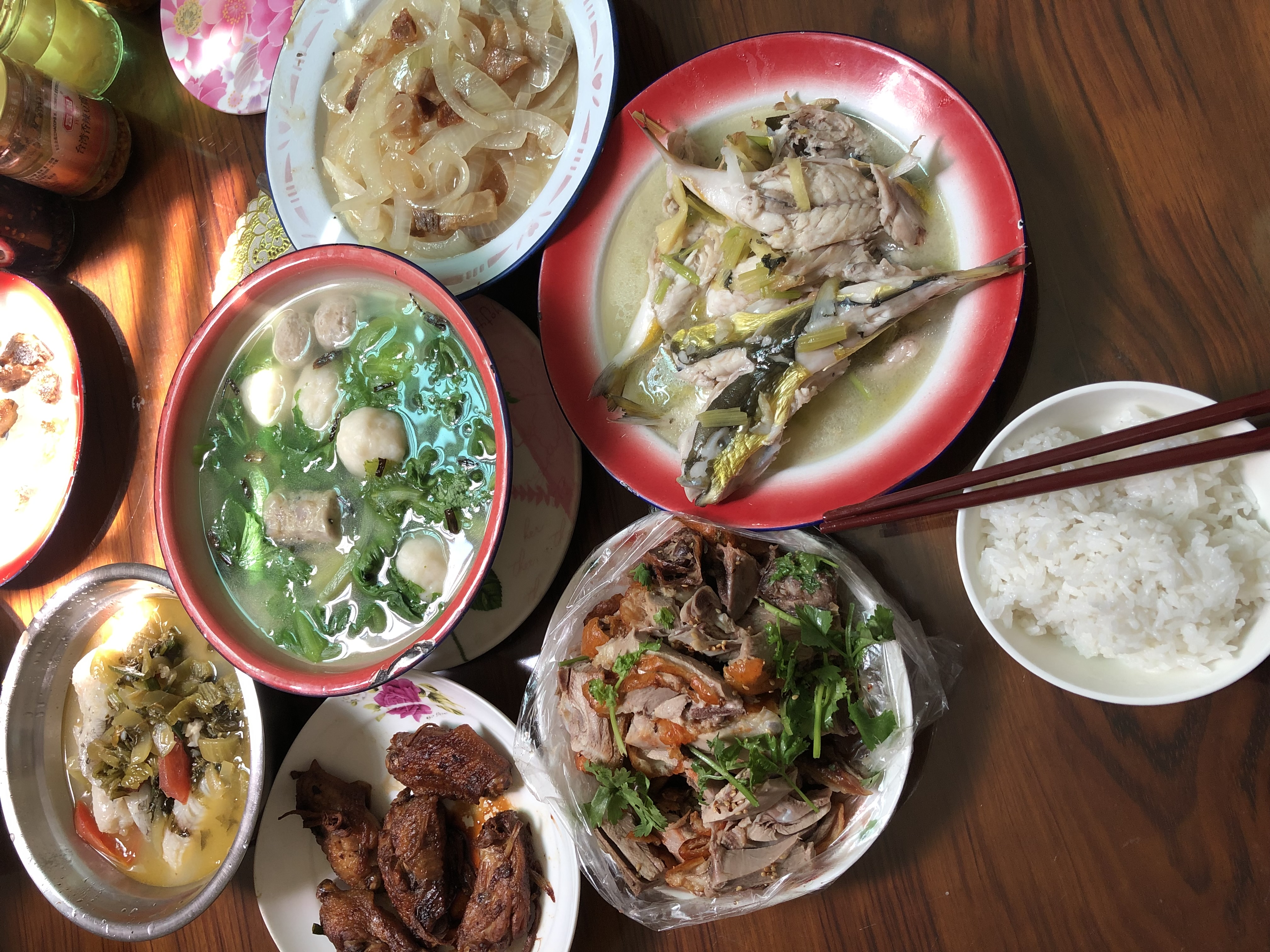 Mixed Asian Cuisine | ["rice","fish","chicken","vegetables","herbs"] | ["rice:200g","fish:150g","meat:200g","vegetables:100g"] | |