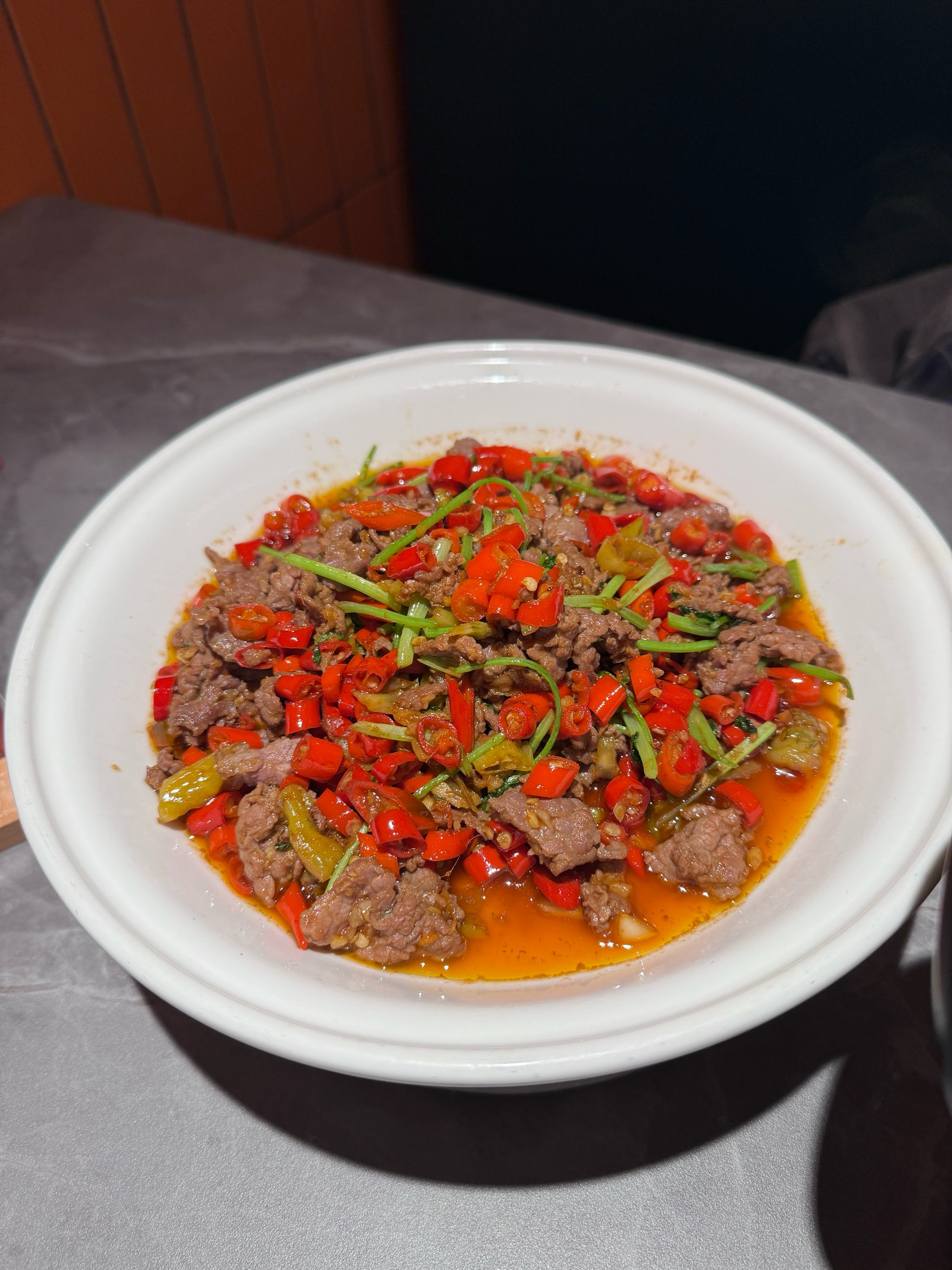 Spicy Beef Stir-Fry | ["beef","red peppers","green onions","spices"] | ["beef:300g","bell peppers:50g","green onions:20g"] | |