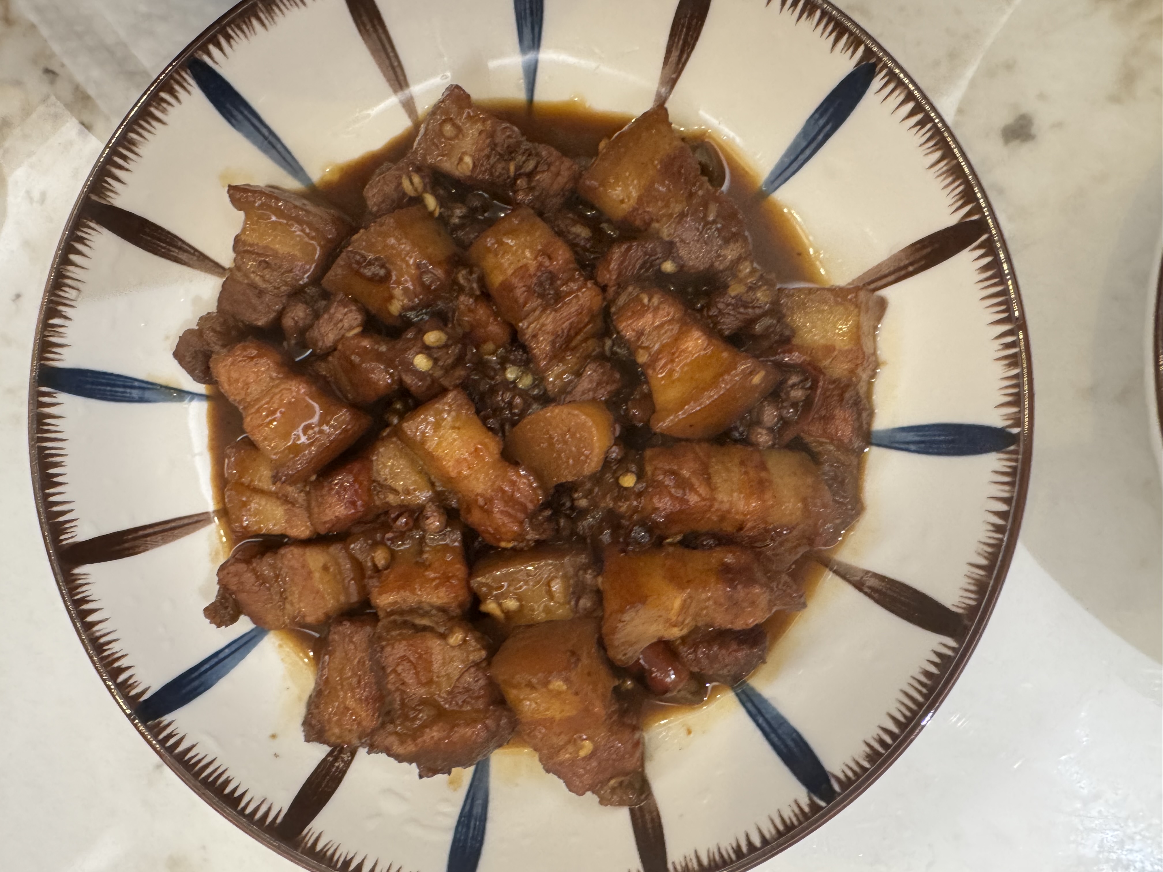 Braised Pork Belly | ["pork belly","soy sauce","sugar","spices"] | ["pork_belly:300g","sauce:50g"] | |