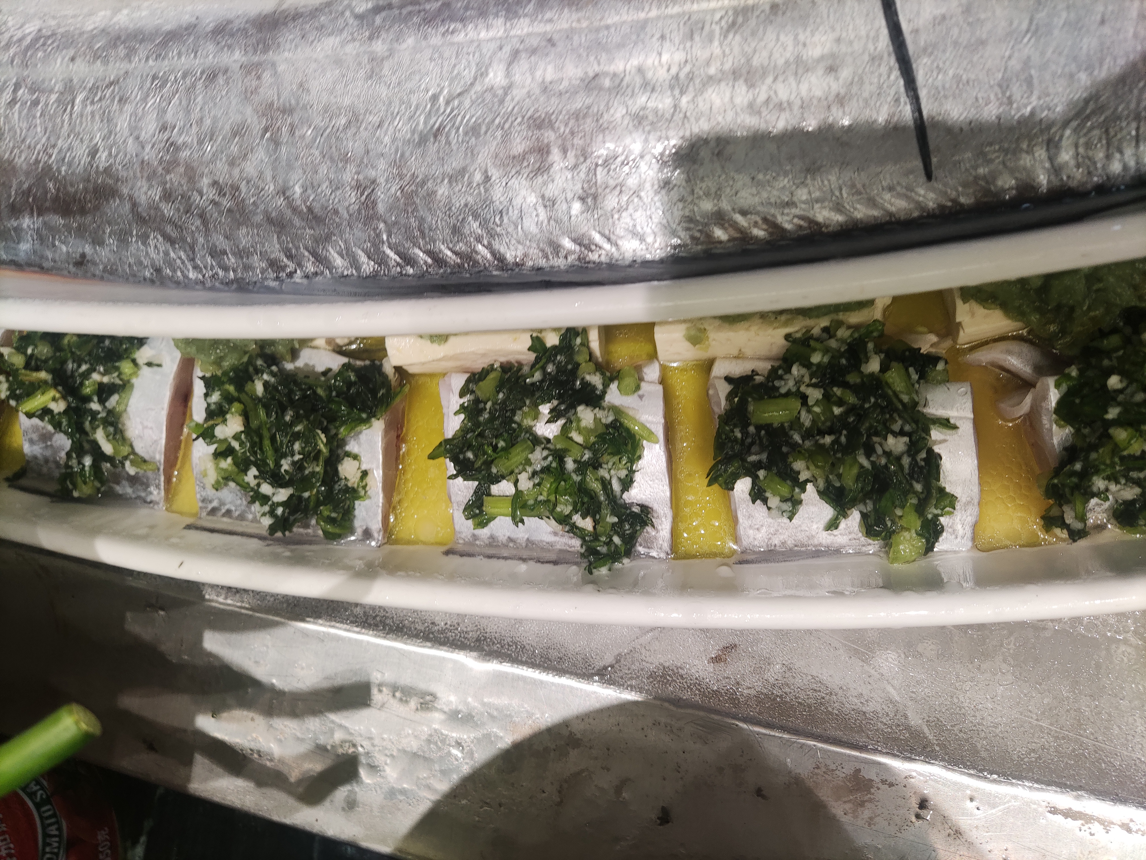 Baked Fish with Greens | ["fish","greens","garlic","olive oil"] | ["fish:200g","greens:150g"] | |