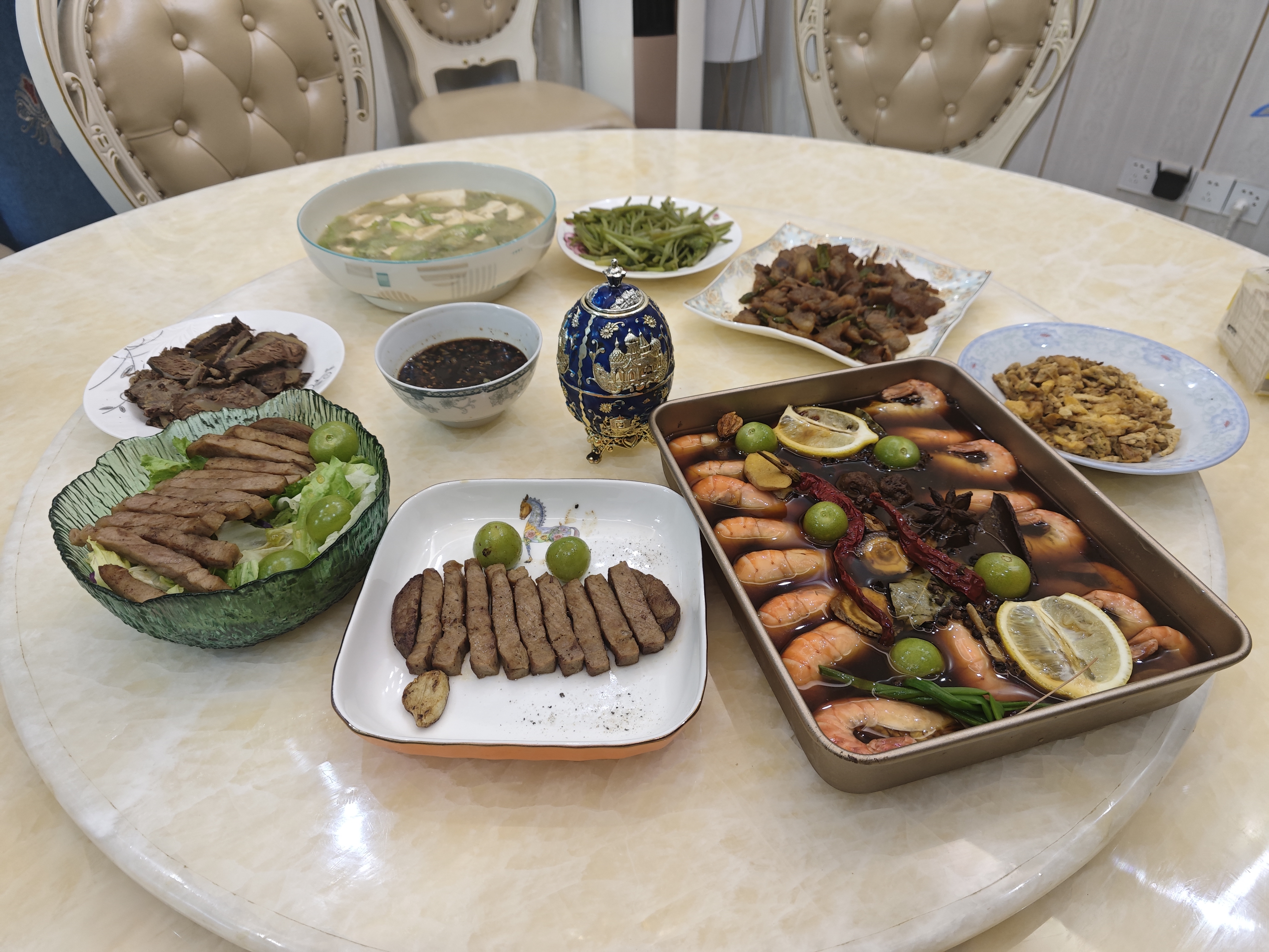 Mixed Seafood and Meat Platter | ["beef","shrimp","vegetables","rice"] | ["beef:200g","shrimp:300g","vegetables:150g","rice:100g"] | |