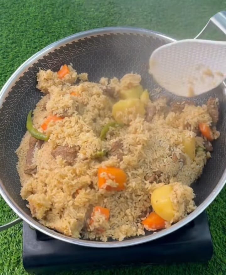Stir-fried beef with rice | ["beef","rice","vegetables","soup broth"] | ["beef:200g","rice:150g","soup:250g"] | |