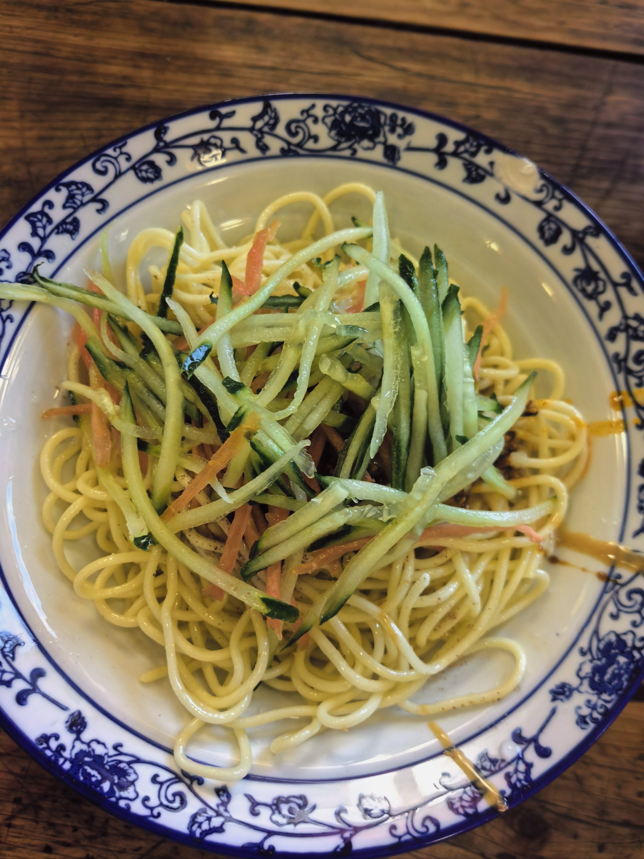 Vegetable Noodles | ["noodles","cucumbers","carrots","sauce"] | ["noodles:200g","cucumbers:50g","carrots:50g"] | |