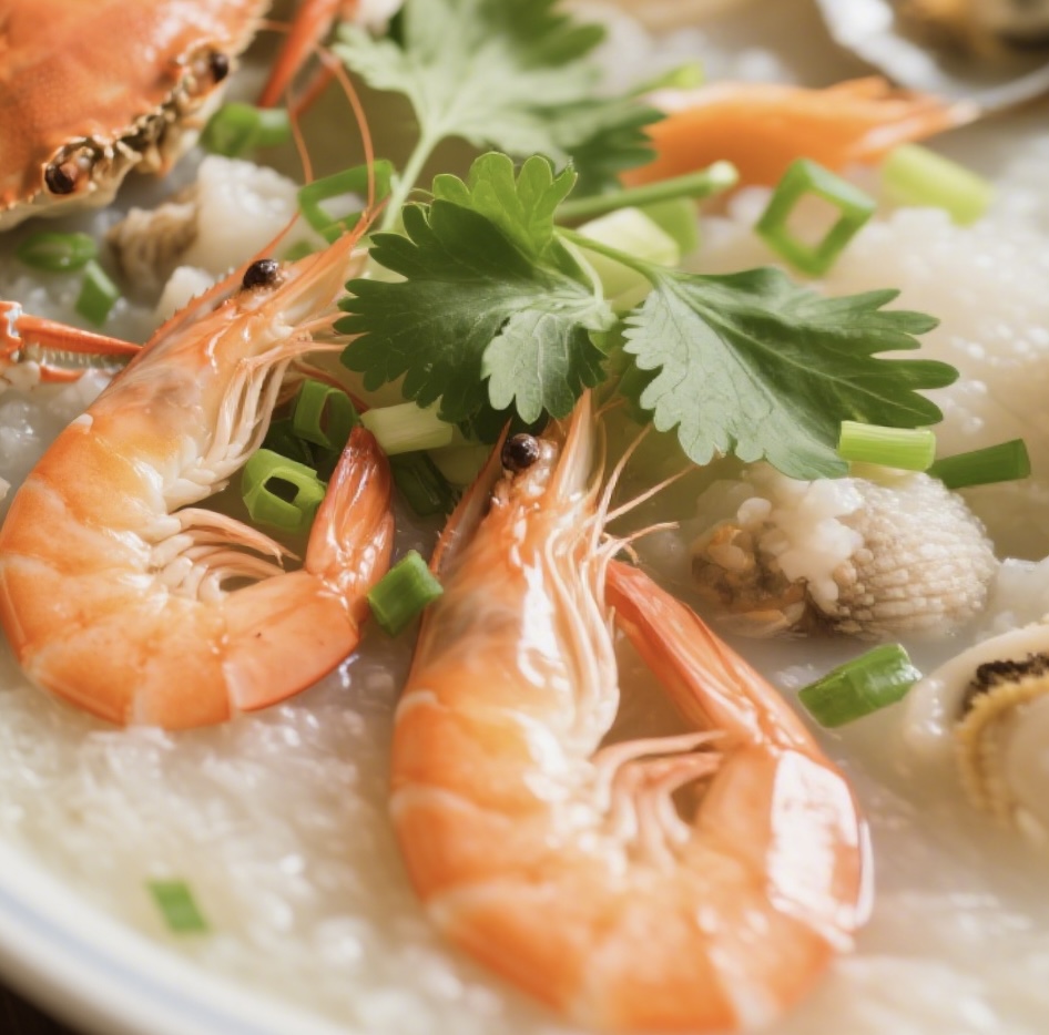 Seafood Congee | ["shrimp","rice","broth","green onions","cilantro"] | ["shrimp:150g","rice:200g","broth:300ml"] | |