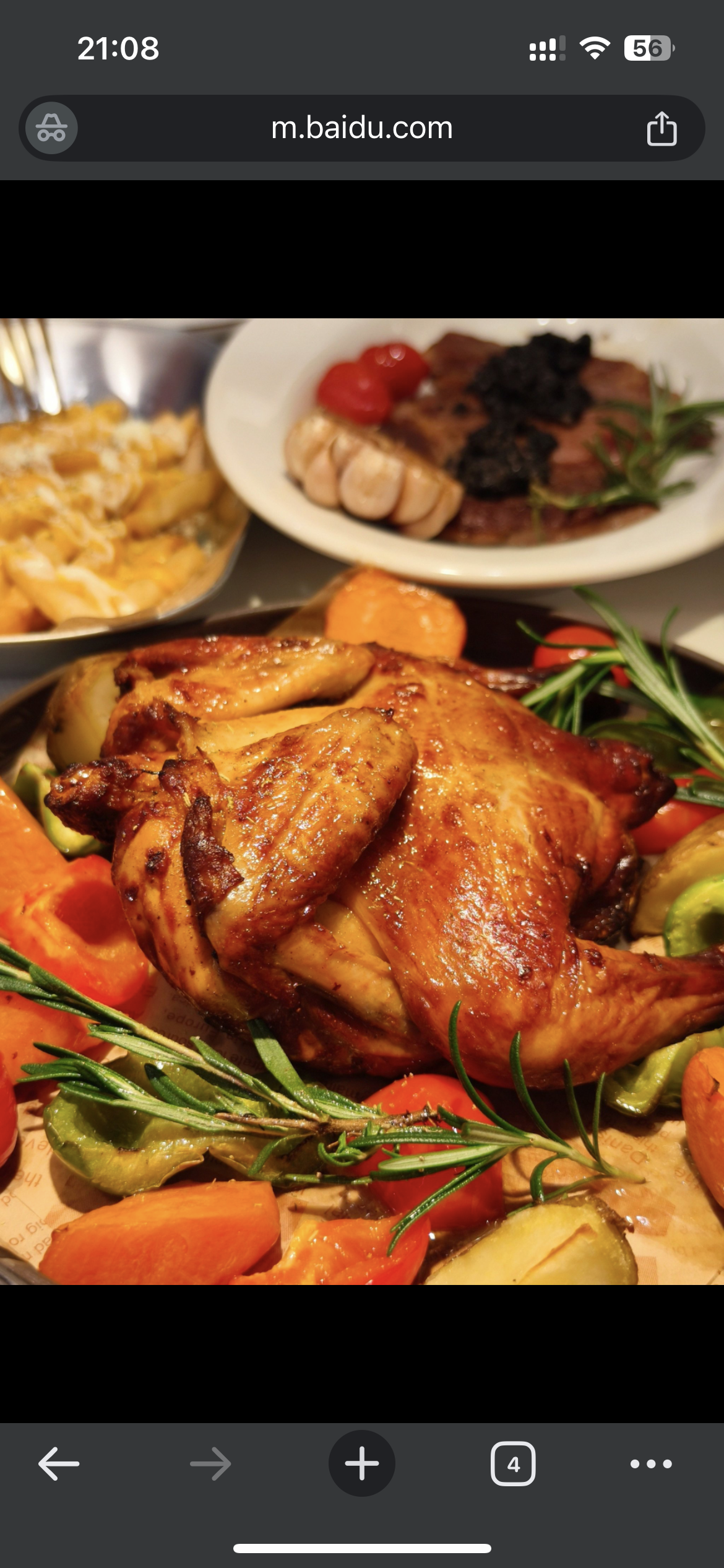 Roasted Chicken with Vegetables | ["roasted chicken","carrots","potatoes","bell peppers","fries"] | ["chicken:500g","vegetables:200g","fries:150g"] | |