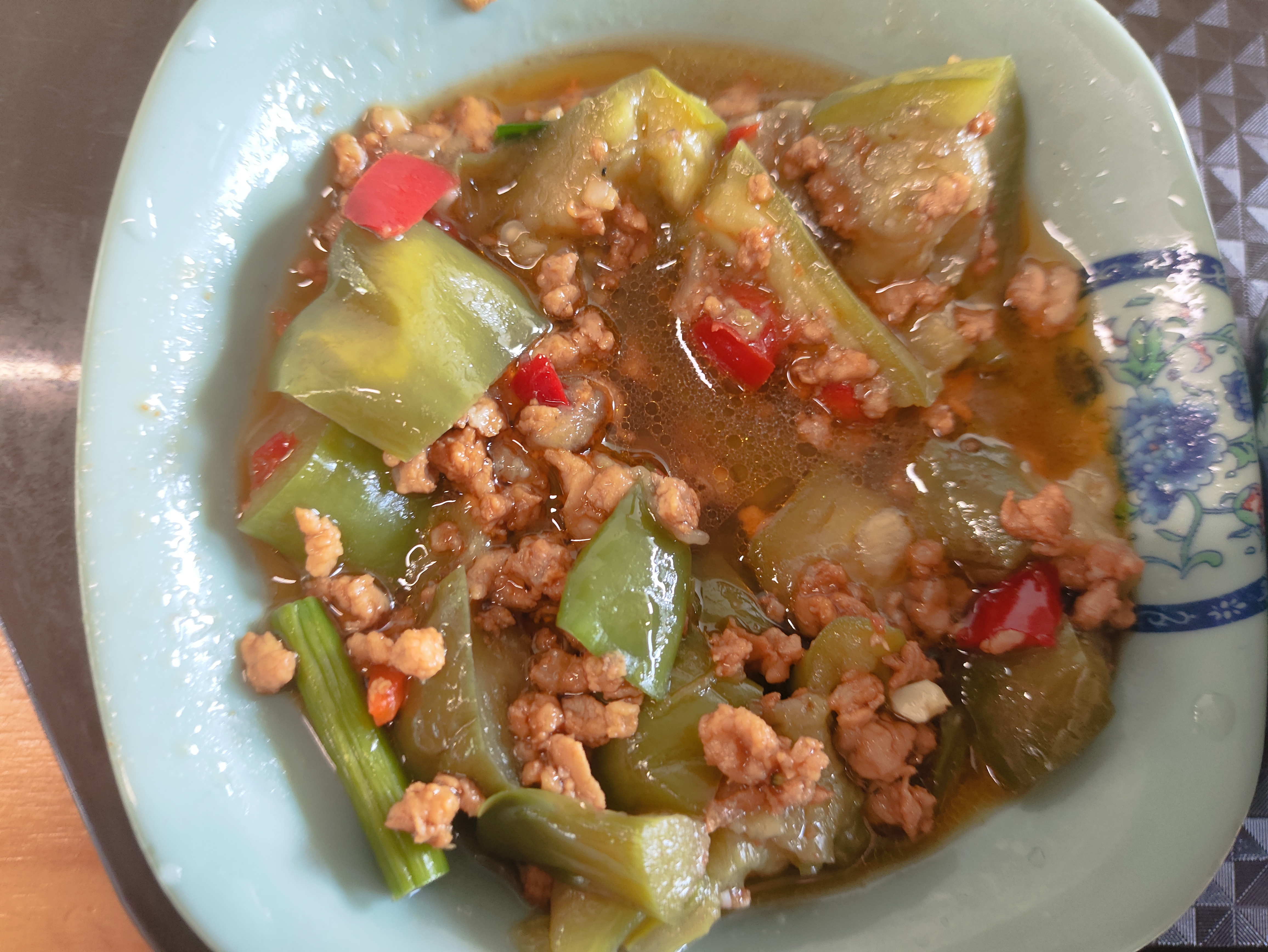 Stir-fried vegetables with minced meat | ["minced meat","green bell pepper","red bell pepper","onion","garlic"] | ["minced meat:150g","vegetables:200g"] | |