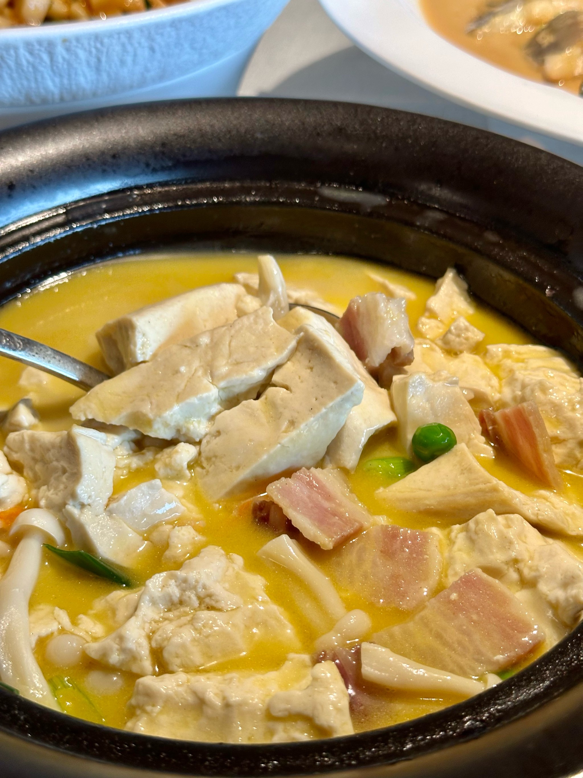 Tofu and Meat Stew | ["tofu","pork","broth","vegetables"] | ["tofu:200g","meat:100g","broth:150g"] | |